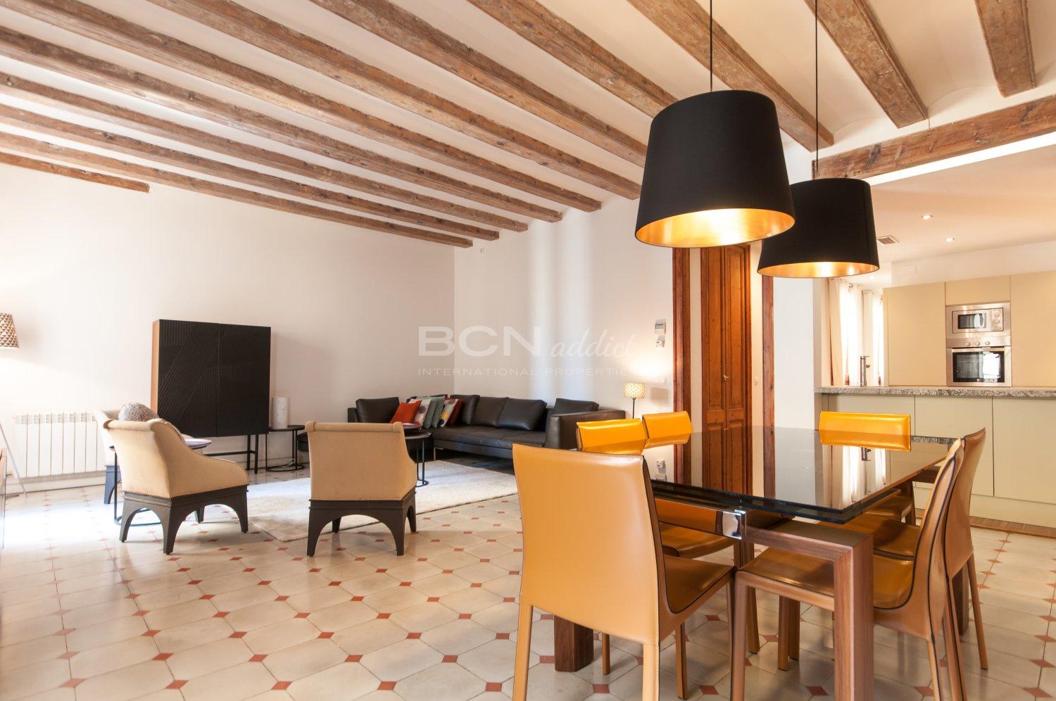 A dos minutos encontraras un piso muy bien reformado en un auténtico palacio del barrio Gótico reformado con acabados de lujo, materias nobles y suelos hidráulicos de época. Impresionante entrada al edificio por un amplio y luminoso patio interior de piedra de época.