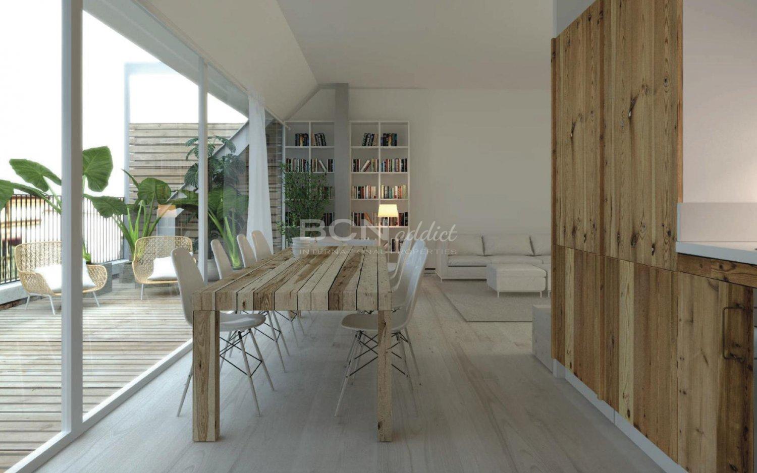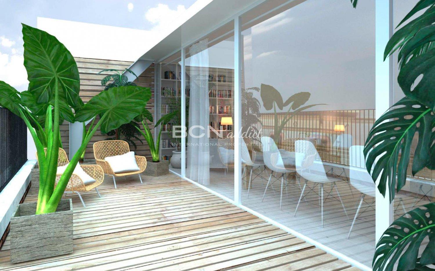 Este piso ubicado en el último y quinto piso cuenta con una sala de estar espaciosa y bien proporcionada. A dos vientos, el piso de 124 m2 está tiene orientaciónl sur (salon) y norte (dormitorio). Cuenta con un salón comedor abierto de 50 m2 con grandes ventanas que se abren a una terraza de 20 m2 que ofrecen unas vistas impresionantes sobre la ciudad. La propiedad también goza de un dormitorio grande de 20 m2 con una terraza de 7 m2 y 1 baño completo. El piso ofrece la oportunidad de desarrollar el sobreático con otro baño y dormitorio con balcón con vistas panorámicas sobre Port Vell y Maremagnum.