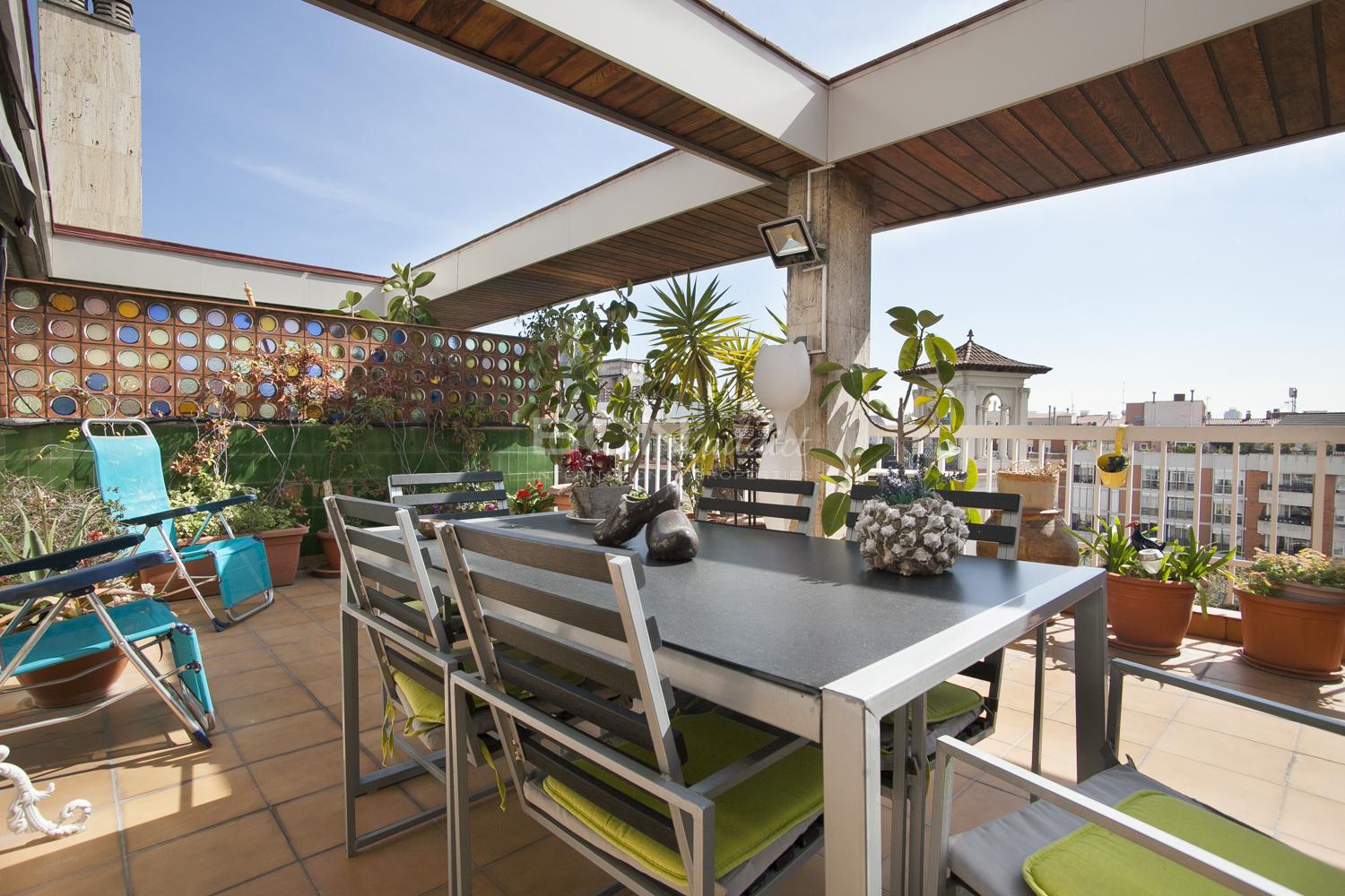 Buscar En el Eixample, tocando a Diagonal encontramos este ático encantador, con mucho sol todo el dia gracias a su terraza de 30 m2 orientada a sur y dormitorios con vistas increíbles a Sagrada Familia.