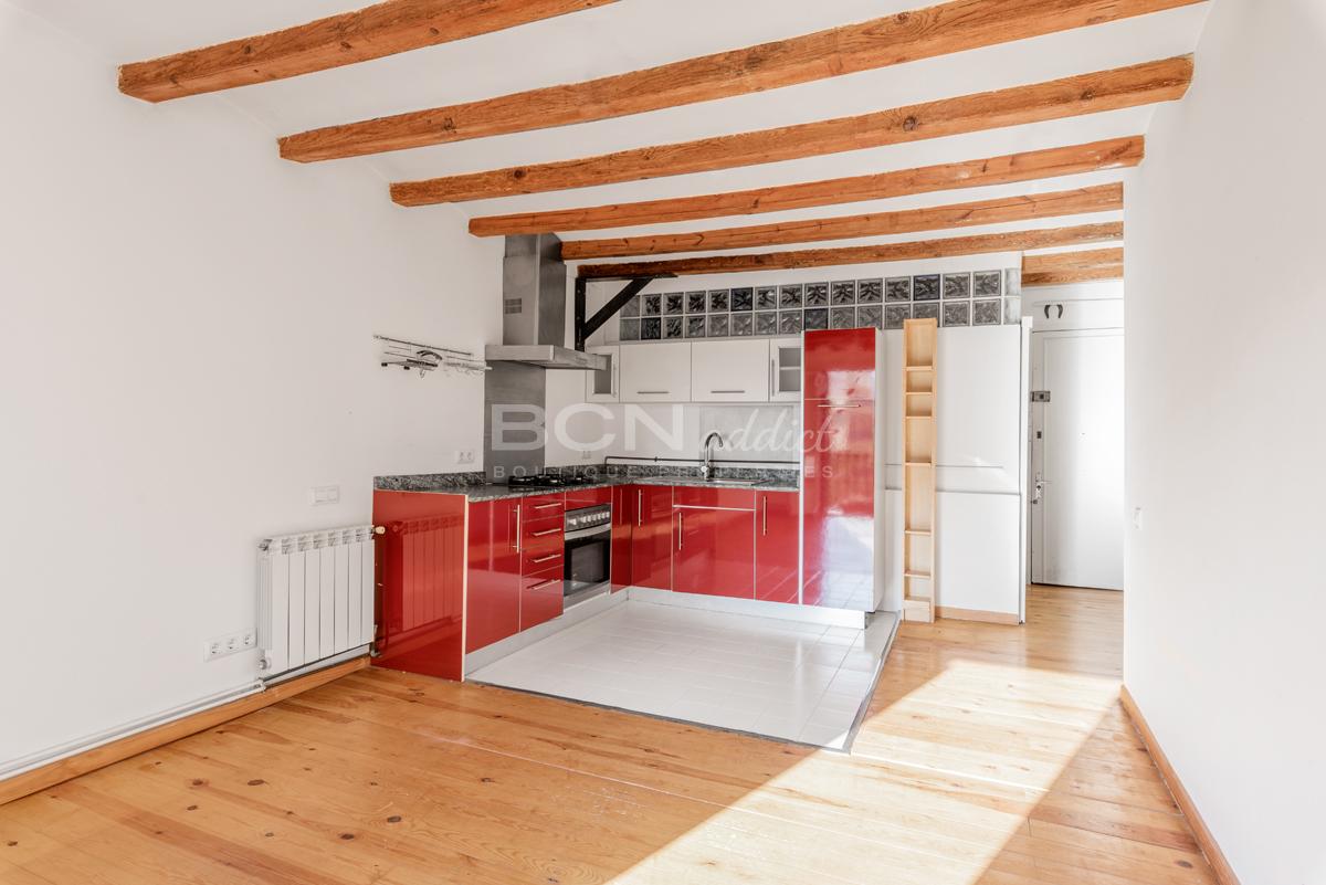 El apartamento tiene dos puertas ventanas orientadas sur-este que abren sobre un amplio balcón (6m2) con impresionantes vistas a la colina y los jardines de Montjuic. También ofrece una terraza (35 m2) de uso exclusivo en el techo con vistas panorámicas a la ciudad de Barcelona.