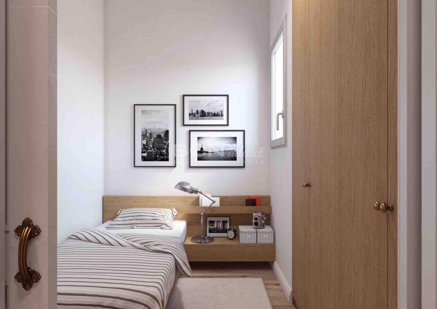 El piso está ubicado en la cuarta planta del edificio con solo un piso por planta y una terraza en la parte posterior. El piso a dos vientos está orientado al este por el lado calle con sol de mañana y sol de la tarde en la tranquila terraza con vistas al patio interior.
