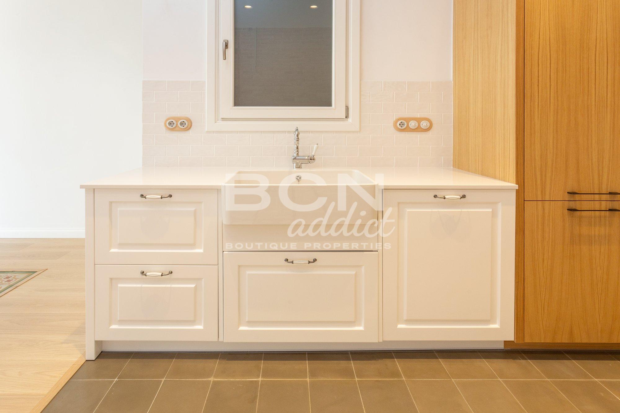 El apartamento ha sido totalmente renovado en el último trimestre de 2017. La reforma combina muchos elementos modernistas originales (como hermosos suelos de mosaico, vidrieras, 3,35 m de altura del techo de ladrillo o paredes de ladrillo macizo) con nuevas instalaciones utilizando materiales de alta calidad y marcas conocidas, como Bosch, Grohe y Fujitsu.