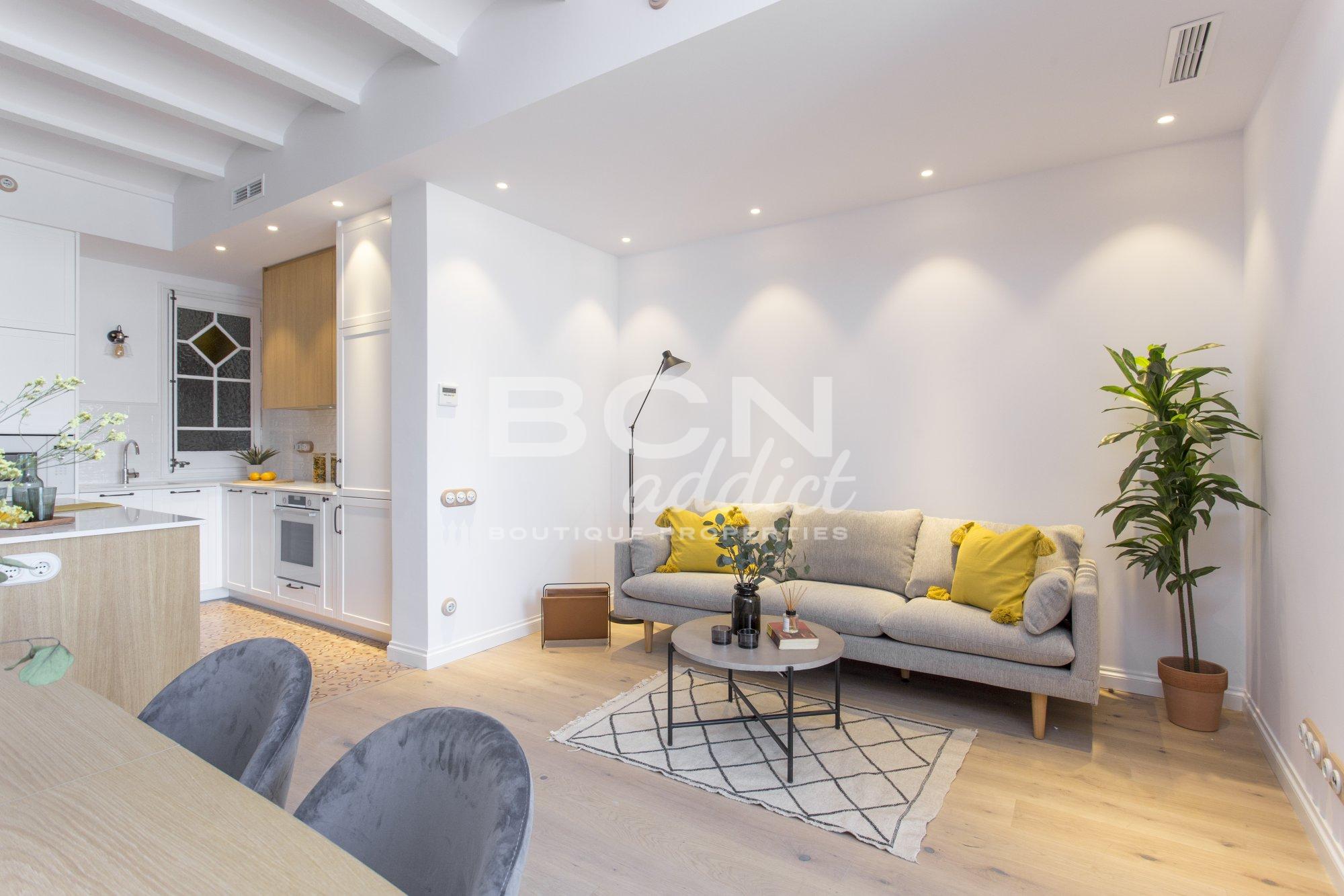 La propiedad se vende totalmente reformada y el mobiliario se vende aparte. . Combina elementos originales (suelo hidráulico, puertas de madera, paredes de ladrillo vista y techos de ladrillo abovedado) con interiores modernos y materiales de primera calidad de marcas conocidas como Bosch, Grohe y Fujitsu.