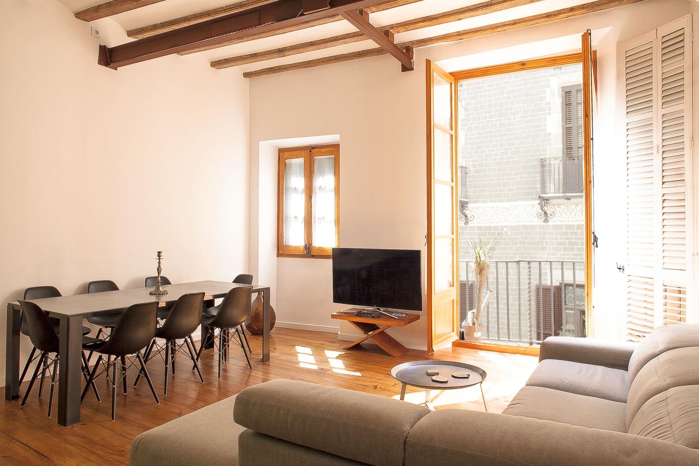 Este piso totalmente amueblado y renovado ofrece una combinación de diseño interior moderno con elementos históricos como carpintería de madera o techo con vigas de madera. El piso está equipado con aire acondicionado (bomba de enfriamiento y calefacción) en todas las habitaciones, caldera para el agua caliente, muebles de cocina y baño a medida y electrodoméstico en la cocina.