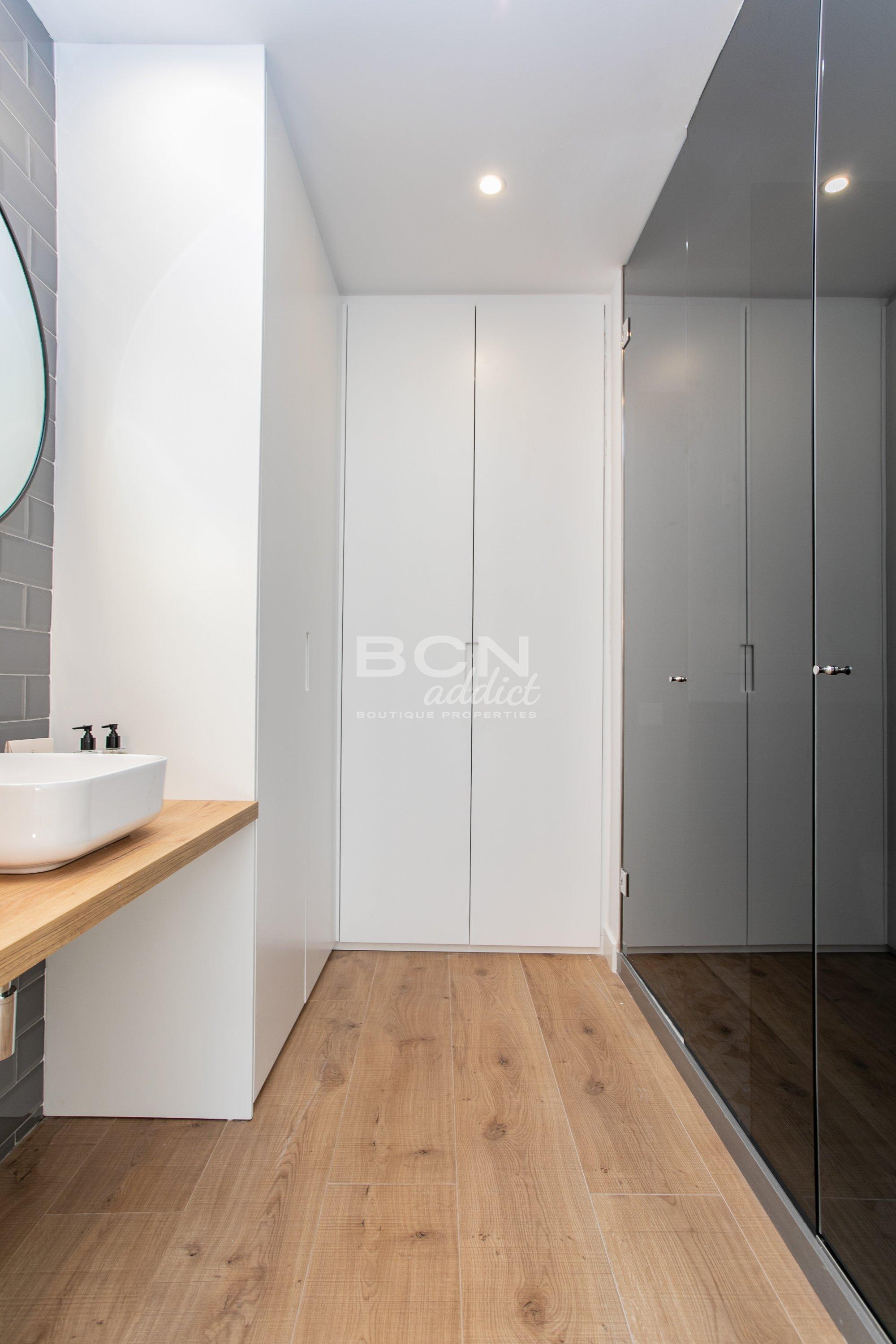 Integralmente rehabilitado, el apartamento tiene forma alargada. El distribuidor nos lleva a grande espacio abierto que conecta de manera cómoda salón y comedor con cocina, formando superficie de casi 30 m2 que da acceso a la suite principal. Este espacio tiene su propio baño completo y vestidor. Ambas áreas, tanto suite, como salón, dan al balcón. El distribuidor proporciona acceso tanto a las dos habitaciones individuales, como a baño completo. La combinación fabulosa de colores claros, diseño minimalista, parque de madera y ventanales grandes, por los cuales entra luz natural todo el día, dan al apartamento un toque moderno sin quitarle sensación acogedora.