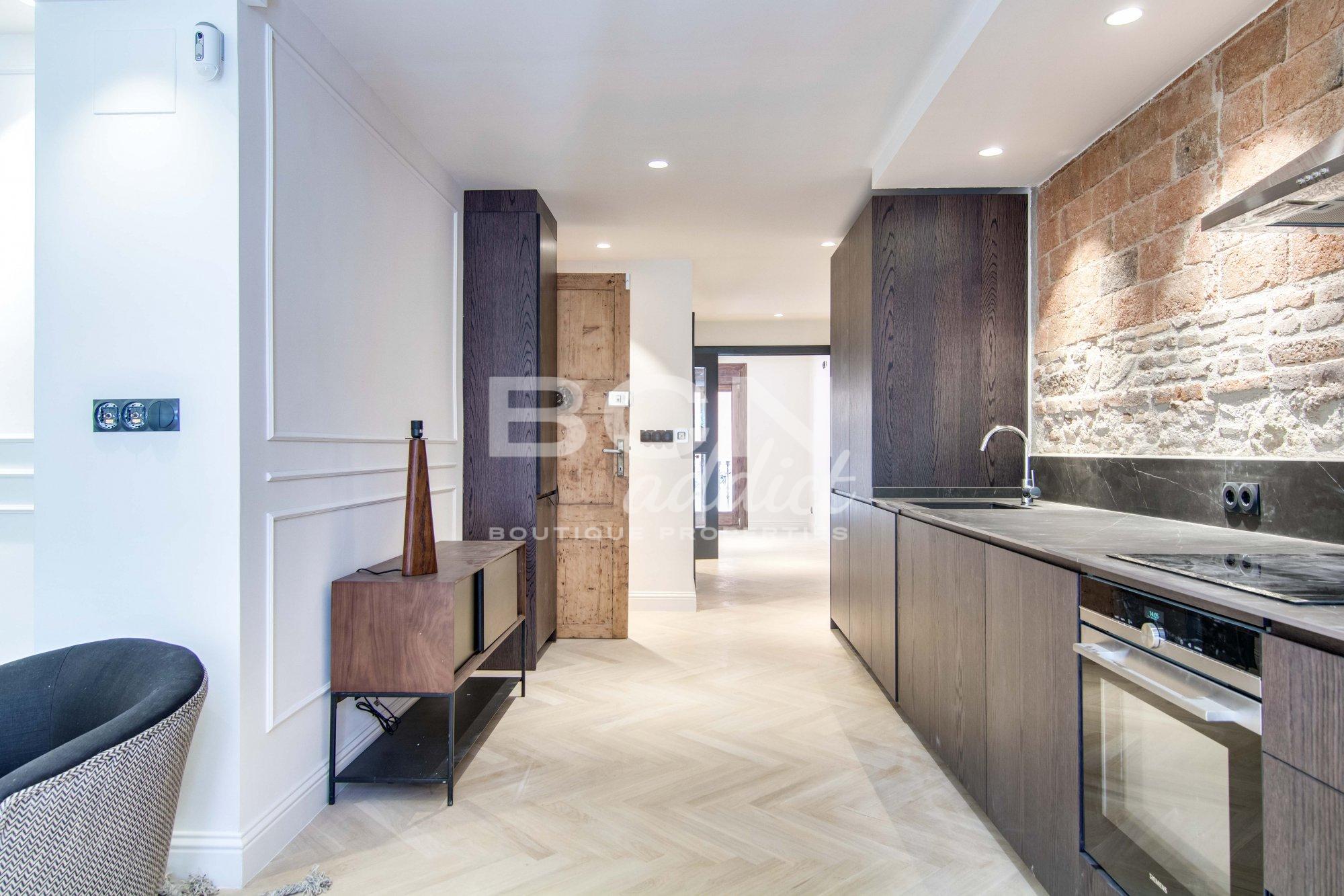 La propiedad combina elementos originales como paredes de ladrillo vista y techos de ladrillo abovedados con un diseño interior moderno y materiales de primera calidad.