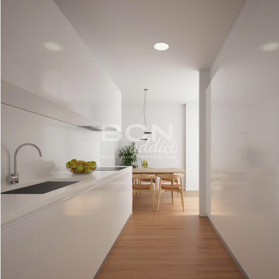 Este apartamento de dos dormitorios de 67 m2, soleado y alto, da por la calle y goza de una orientación este. Ubicado en la segunda planta, el apartamento ofrece una amplia sala de estar: disfruta de una sala de estar abierta con un ventanal que da a la calle. La cocina de planta abierta tiene muebles, electrodomésticos incorporados y espacio para la lavadora y el almacenamiento.