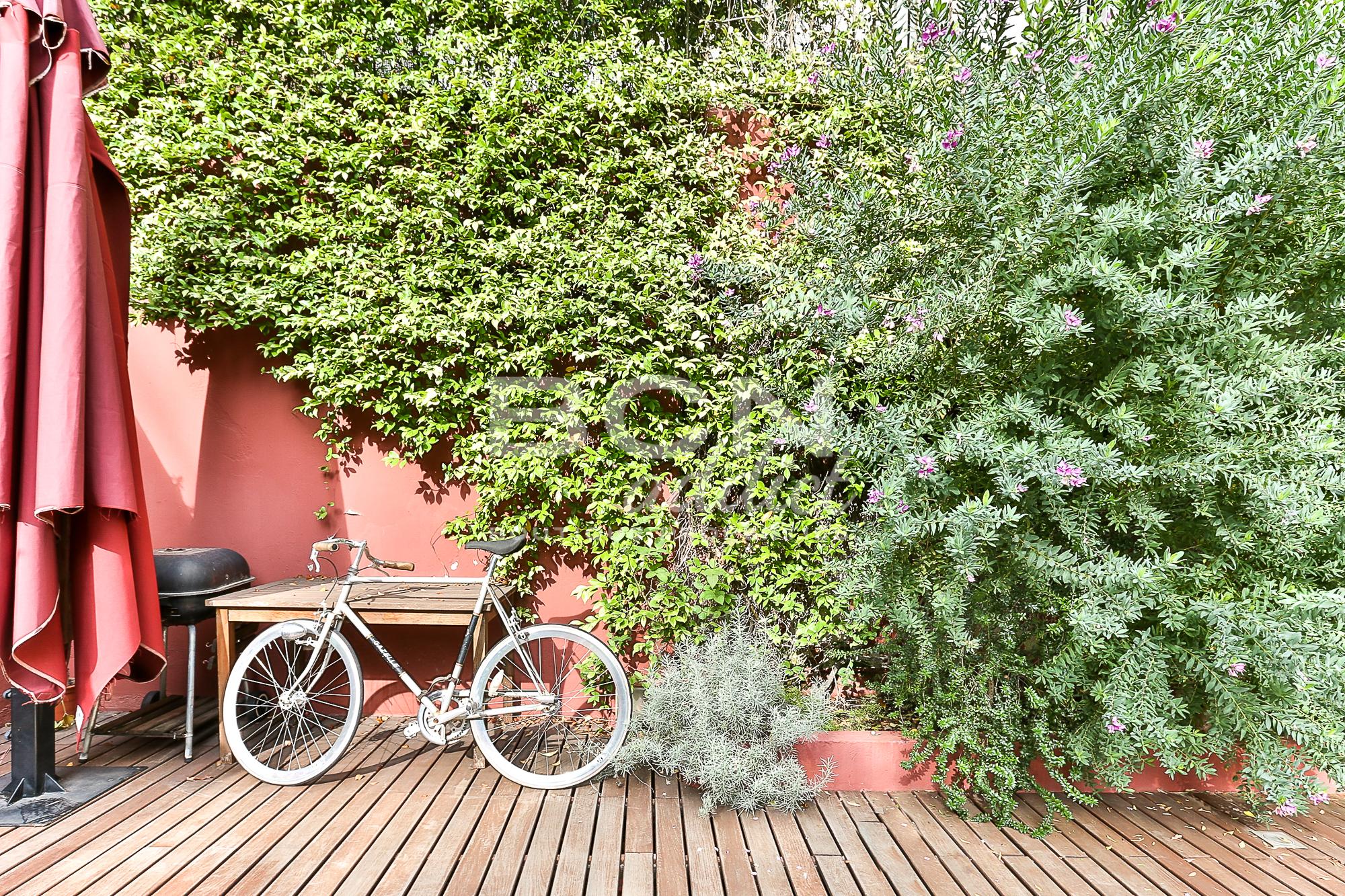 El piso en planta baja de 30 m² ofrece una distribución tipo loft, con un espacio central con salón y cocina abierta, dormitorio y cuarto de baño completo. También dispone de un pequeño patio con escaleras que llevan a la terraza de la planta principal. Existe la posibilidad de alquilar esta planta, ya que cuenta con entrada independiente desde la entrada del edificio.