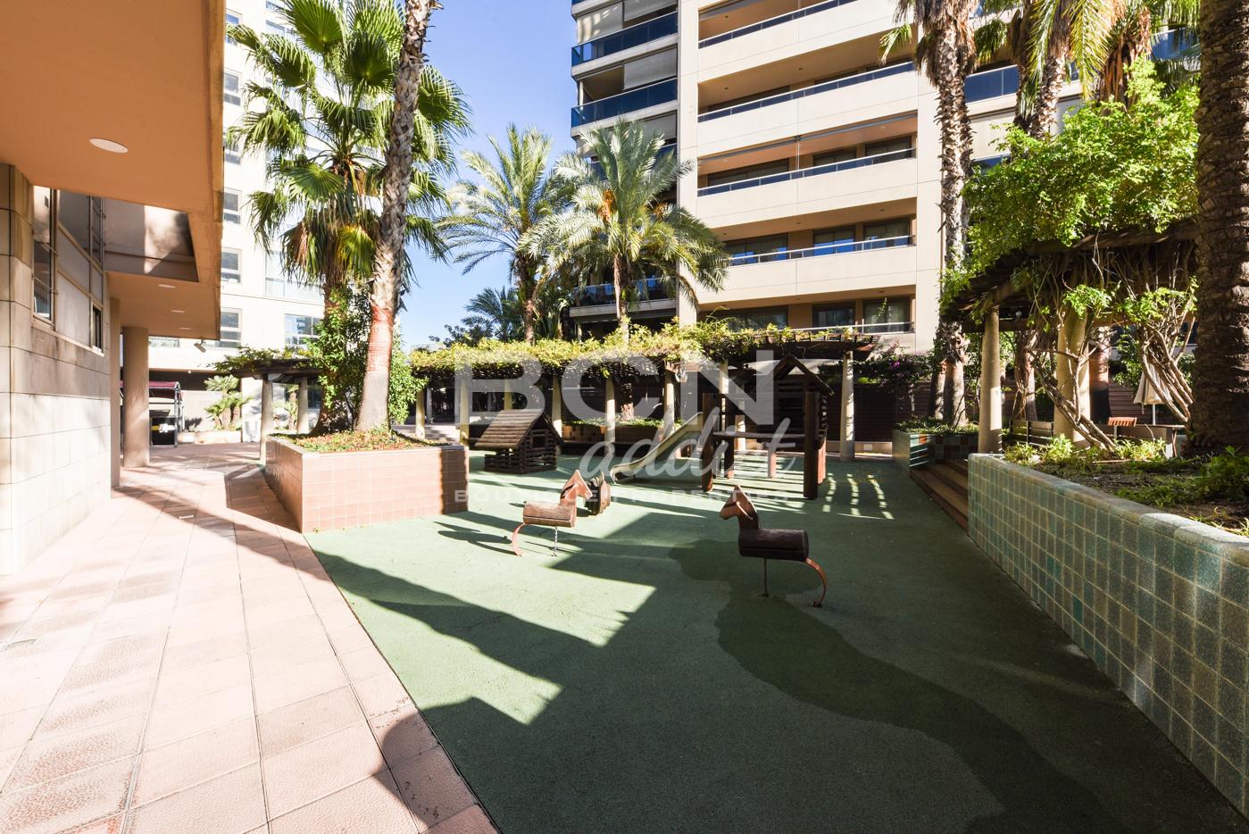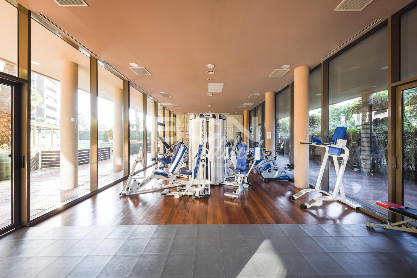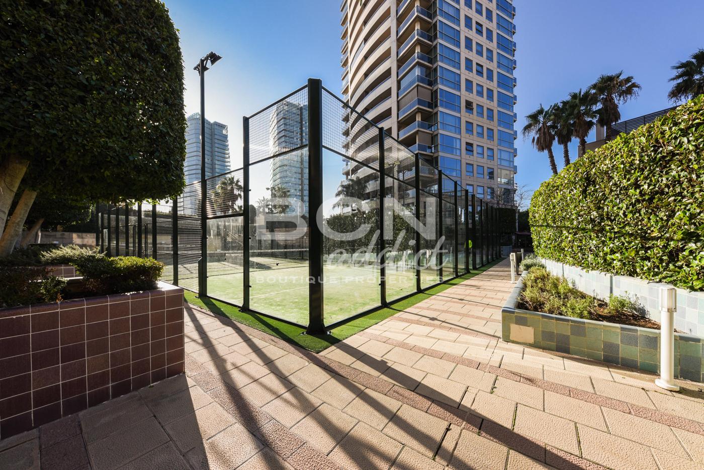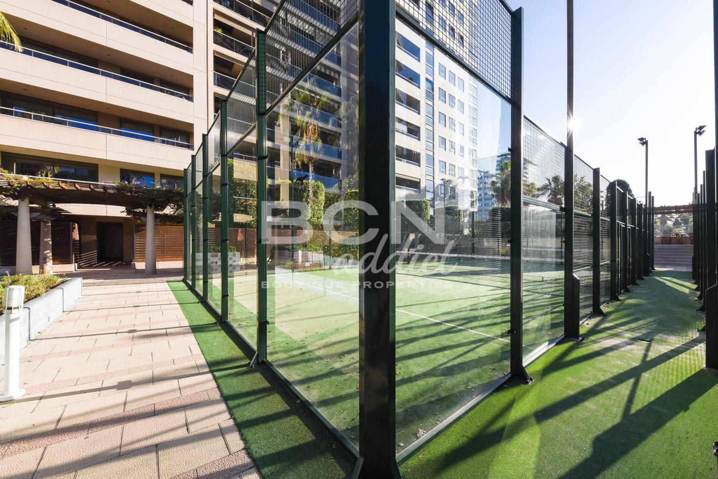 El vestíbulo moderno en la planta baja alberga un conserje con servicio de seguridad las 24 horas. El edificio ofrece también varias áreas comunitarias interiores y exteriores, como gimnasio cubierto, piscinas al aire libre, sauna, canchas de paddle, zonas verdes, solárium y pérgola o sala de ocio.