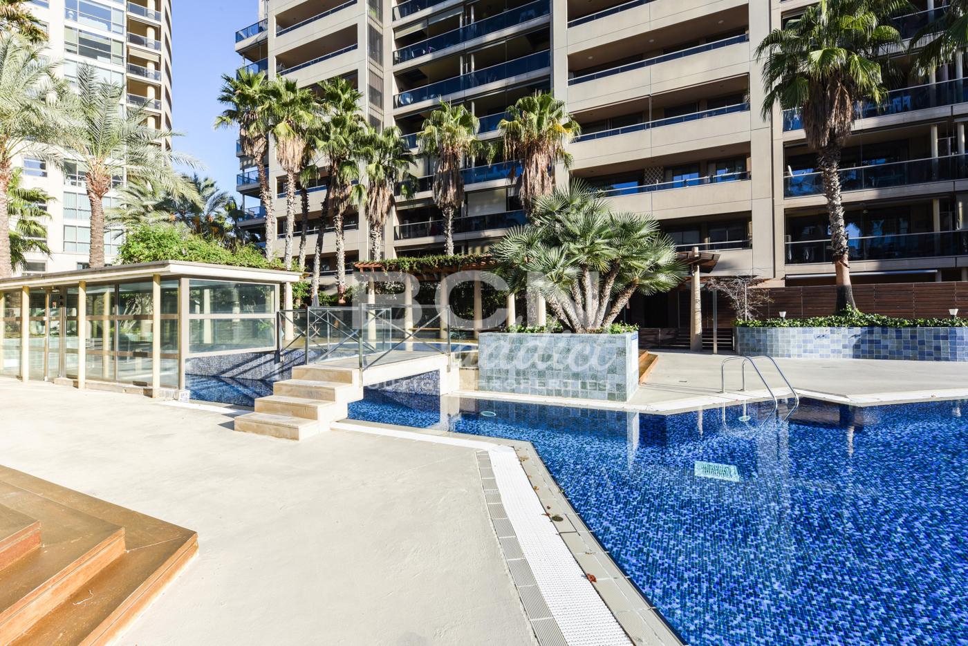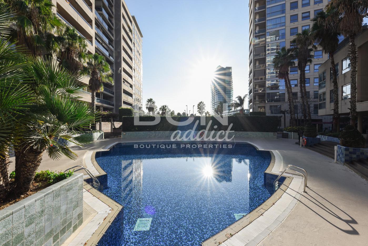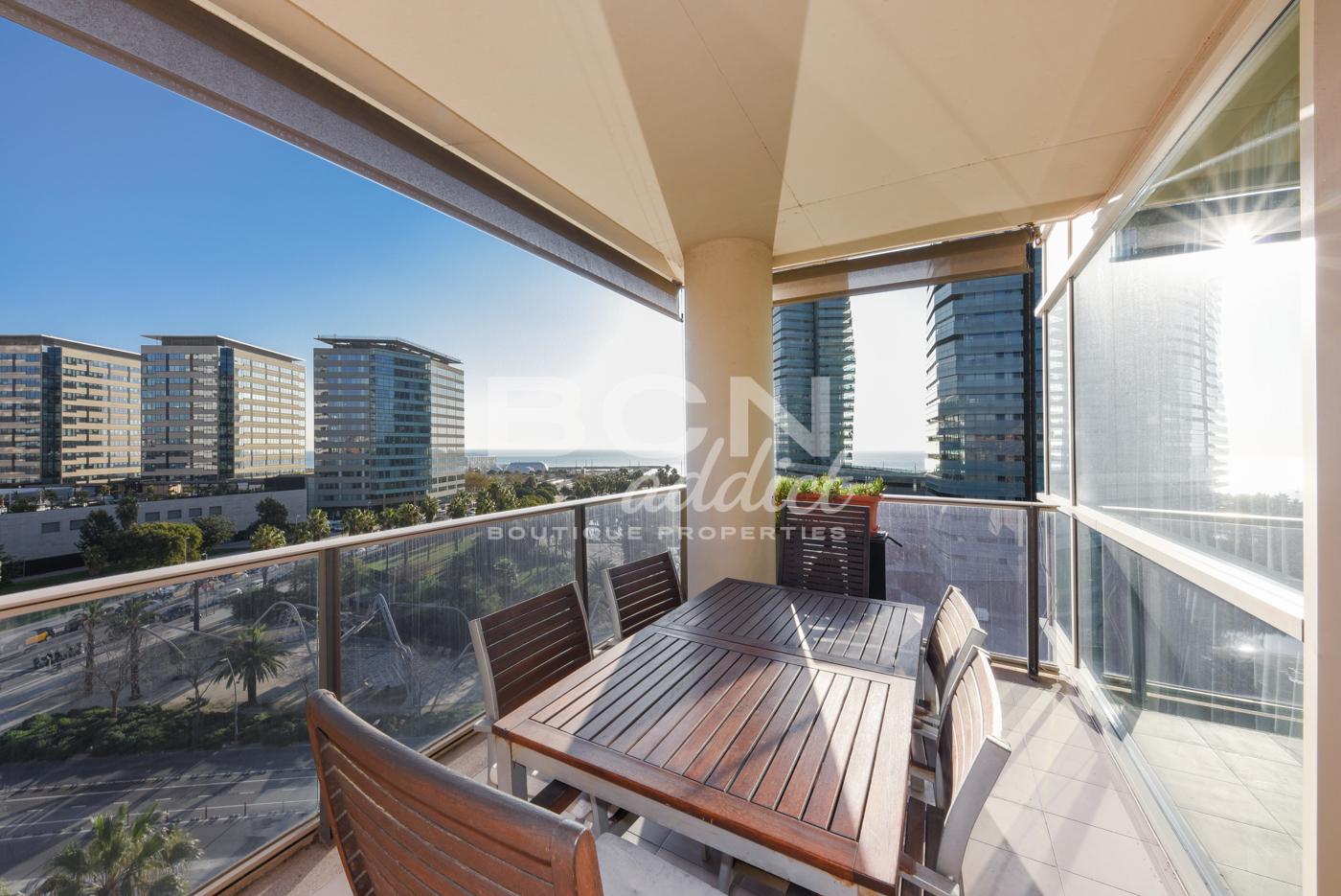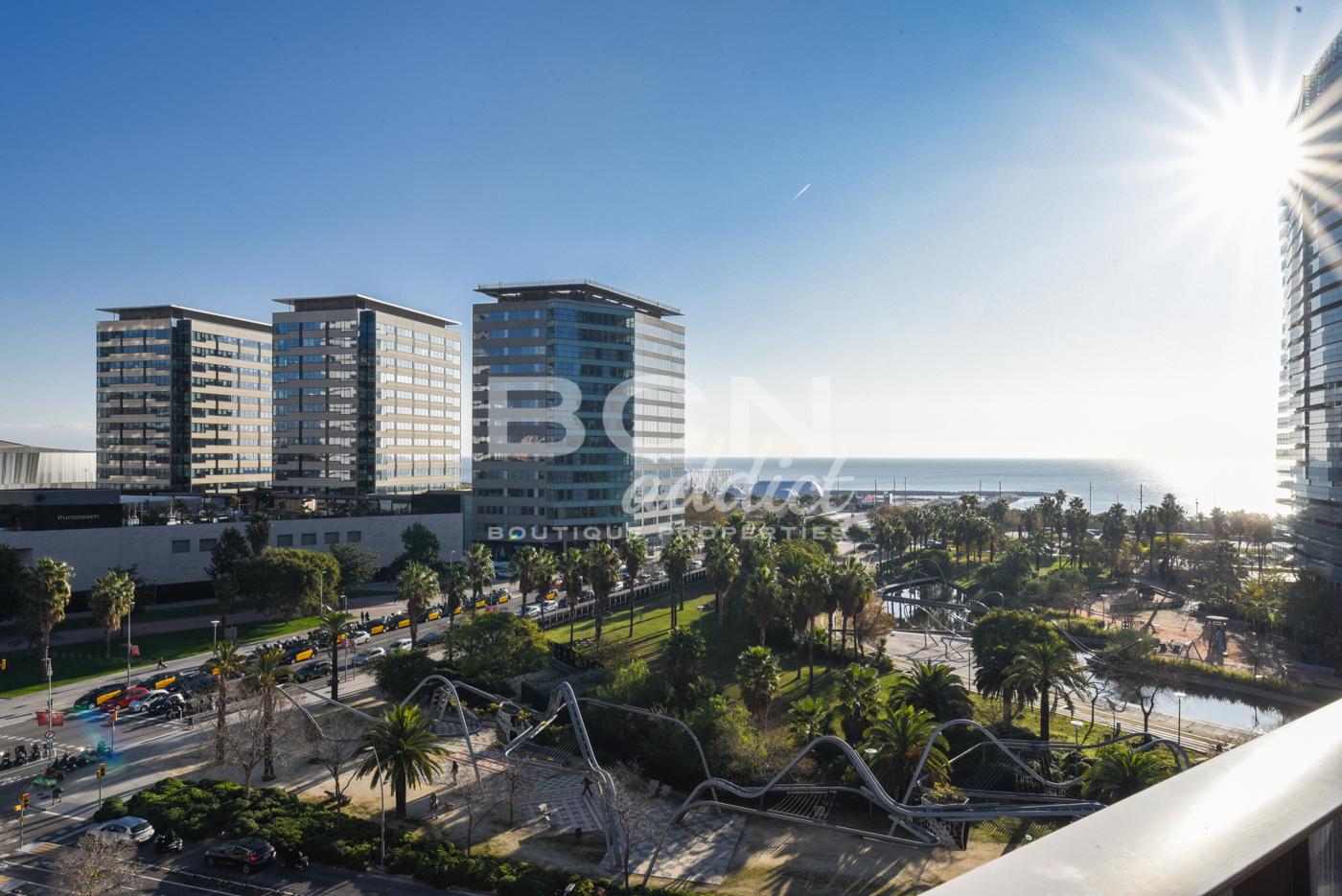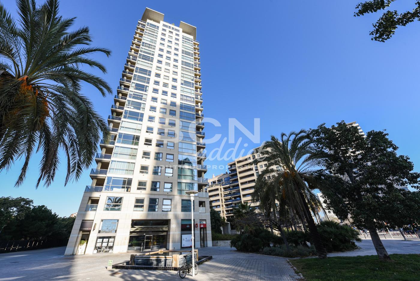 Buscar Ubicado en el distrito de Diagonal Mar de Barcelona, el apartamento está ubicado en la séptima planta de uno de emblemáticos rascacielos residenciales del barrio de Diagonal Mar, de 21 plantas construido en 2002. El edificio está en una ubicación privilegiada, al lado del mar. Se encuentra momentos de los transportes públicos como la línea de metro L4 y está rodeado de tiendas de primera necesidad, bares y restaurants. La propiedad también está a poca distancia del parque Diagonal Mar y el centro comercial Diagonal Mar.