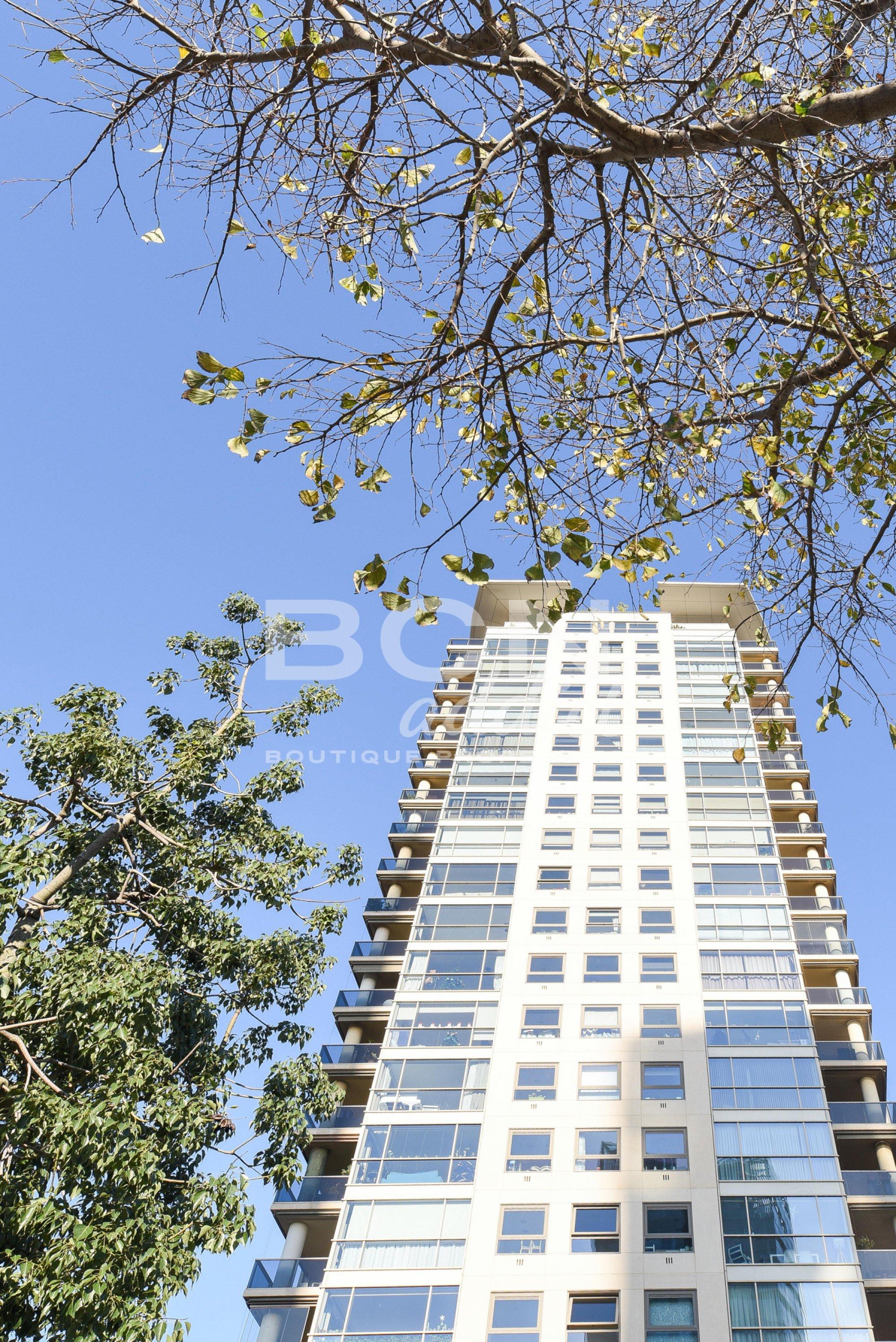 La construcción cuenta con una elegante fachada contemporánea con paneles de aluminio esmaltado y elementos de vidrio opaco. El edificio también cuenta con plantas subterráneas de parking con ascensores que conectan los niveles residenciales superiores. El precio de la propiedad incluye una plaza de parking en el sótano del edificio.