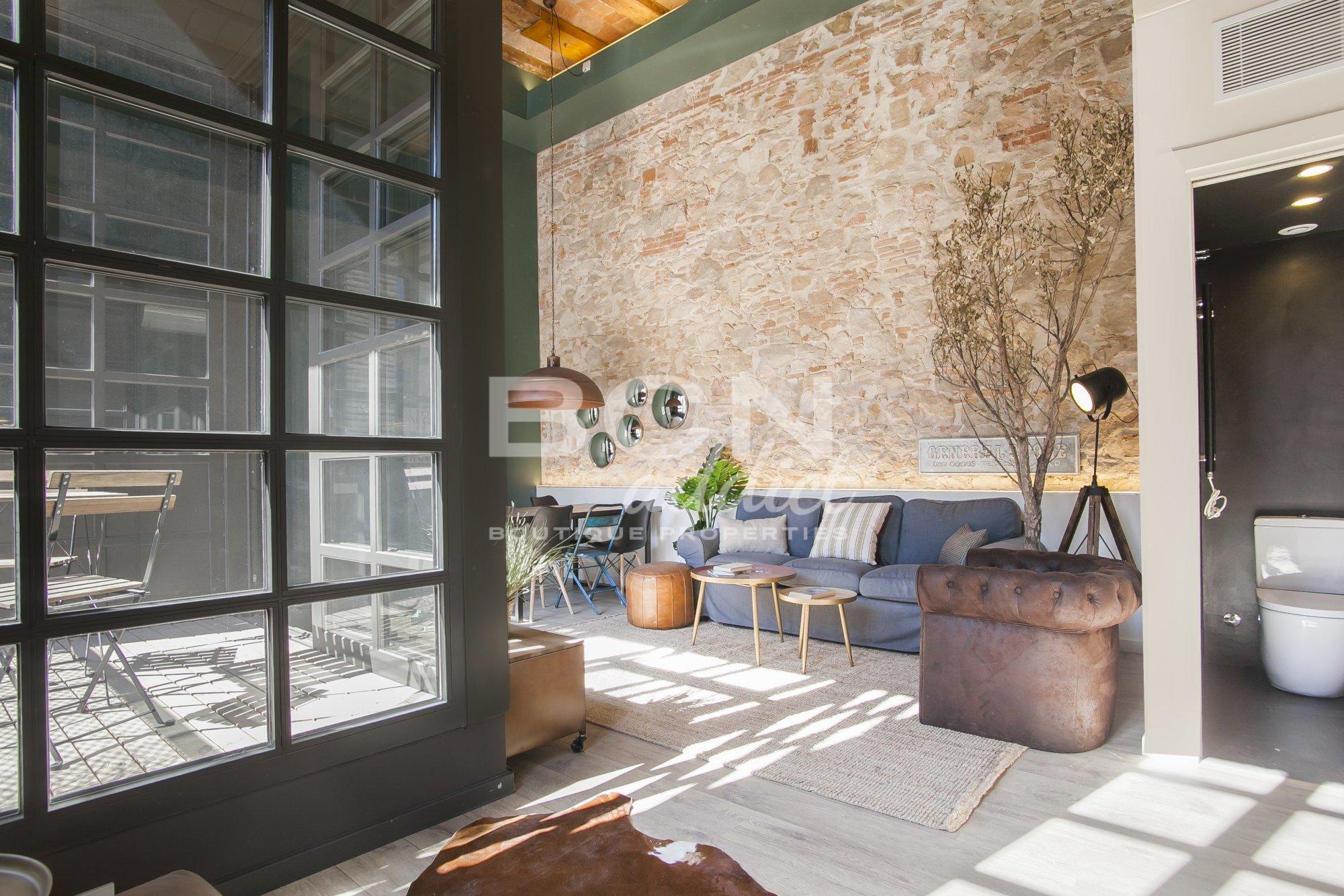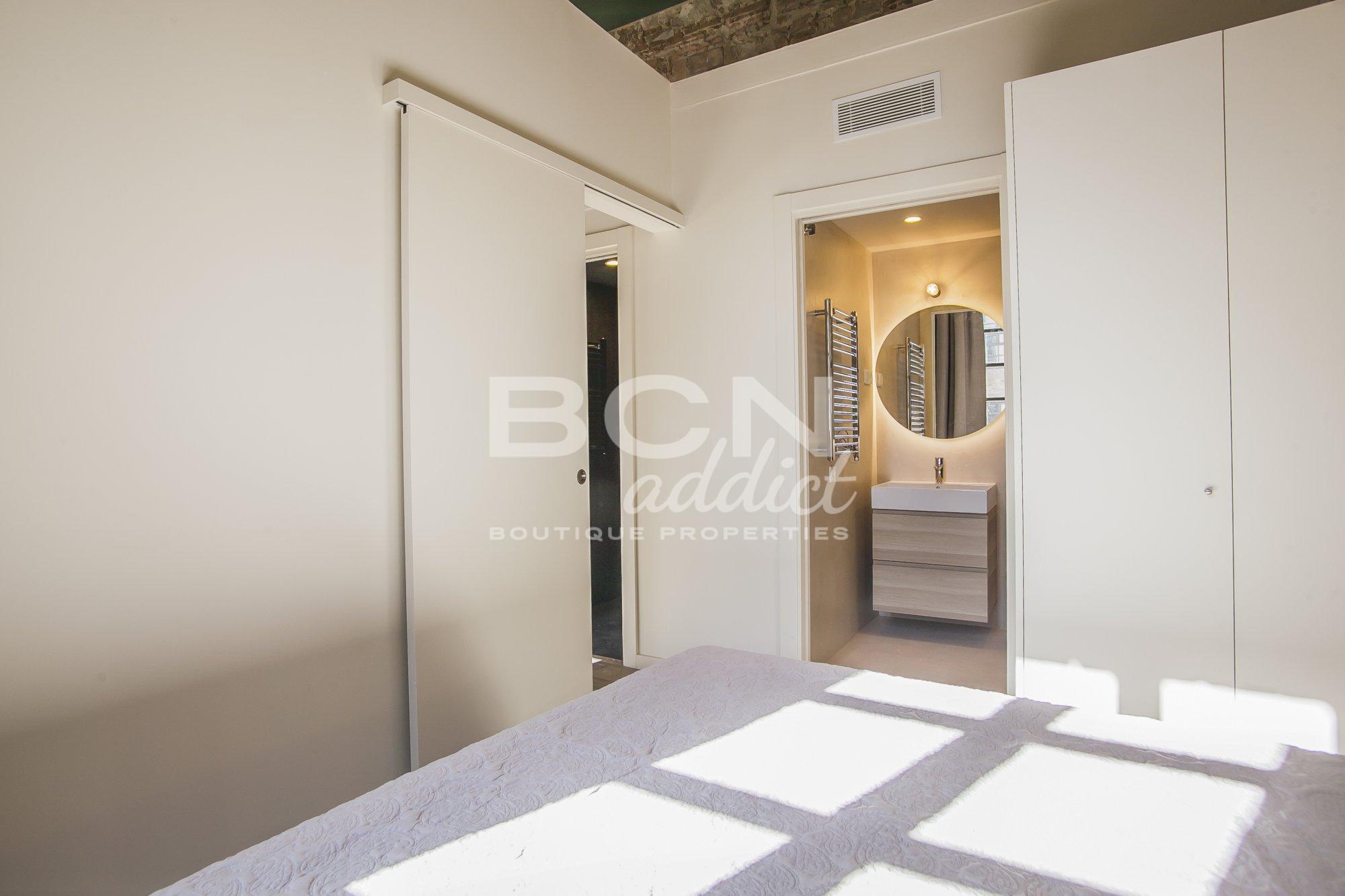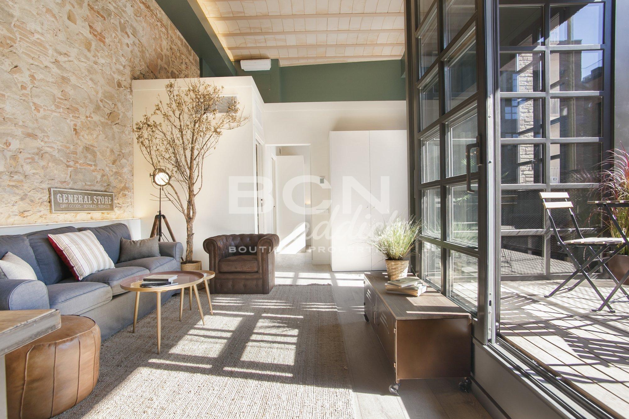 Buscar Original apartamento totalmente exterior y completamente equipado ubicado en la 2ª planta con 2 habitaciones y 2 baños completos. Terraza con vistas a la zona comunitaria. Zona de 16m2 de altillo para otra habitación o zona de trabajo. Techos antiguos con ´volta catalana´ de 5m.