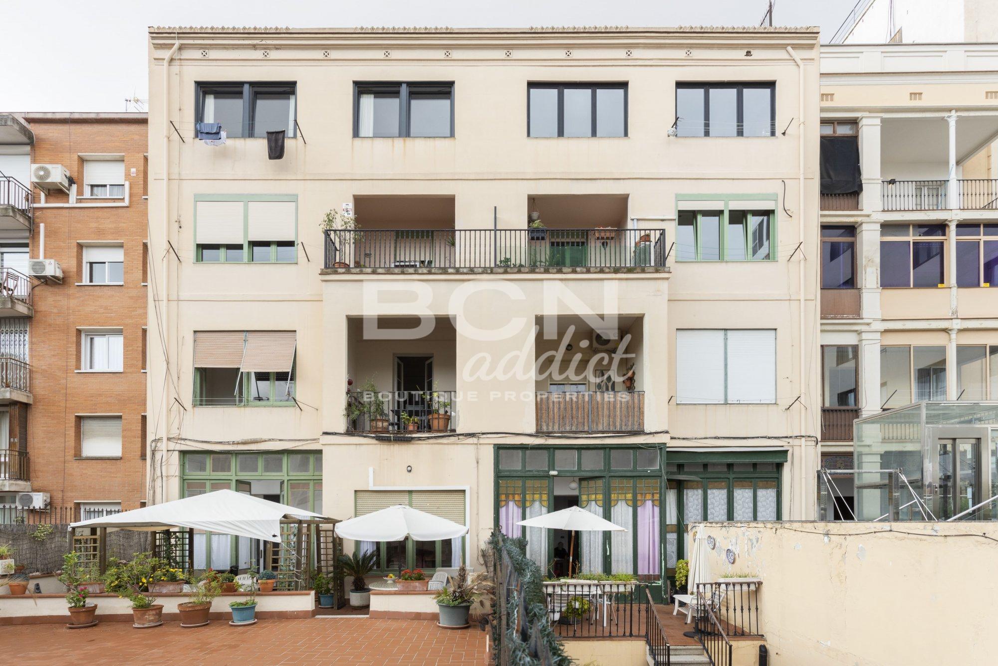 El edificio consta de un total de planta baja y 5 plantas piso. En la cota callejera encontramos locales de uso comercial, mientras que el resto de plantas son residenciales. El edificio se desarrolla dando lugar principalmente a dos viviendas por planta. Cada uno de estos pisos tiene dos zonas diferenciadas en los extremos, por un lado la calle Bruc con sol de mediodía y tarde y por otro un tranquilo patio de manzana. Es en esta parte trasera donde encontramos la fantástica terraza de 70 m2. Las zonas intermedias se apoyan en patios interiores por lo que también disponen de luz natural y ventilación.