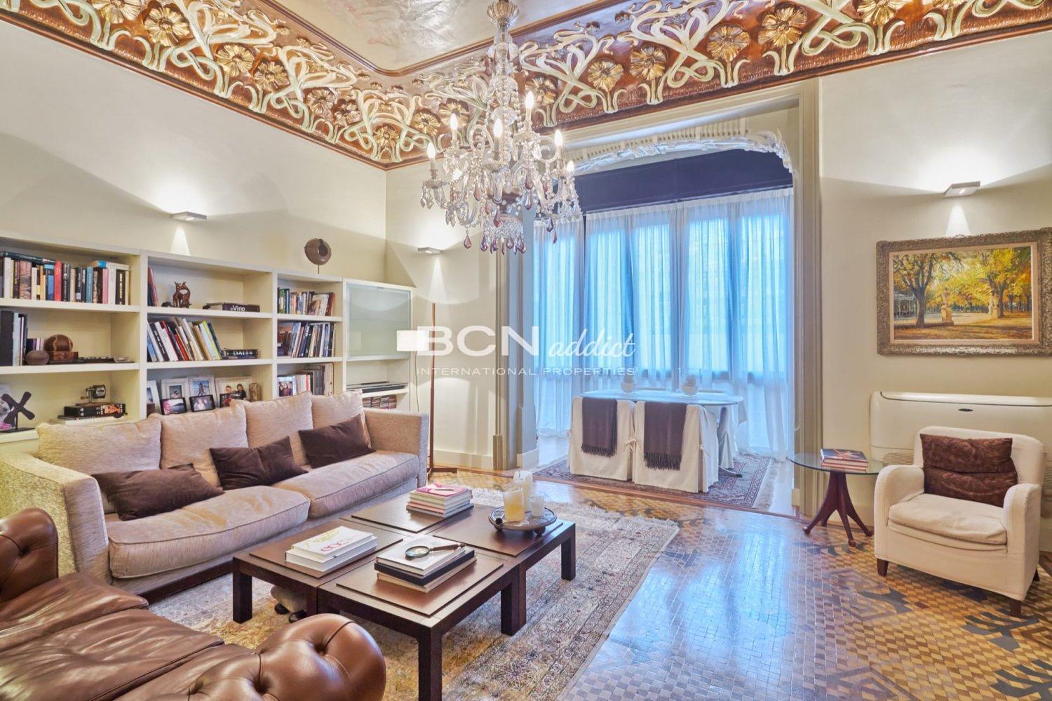 Search This spectacular modernist apartment is on the principal floor in Barcelona - it has a large gallery space and balconies, and resides within a regal building built in 1910.