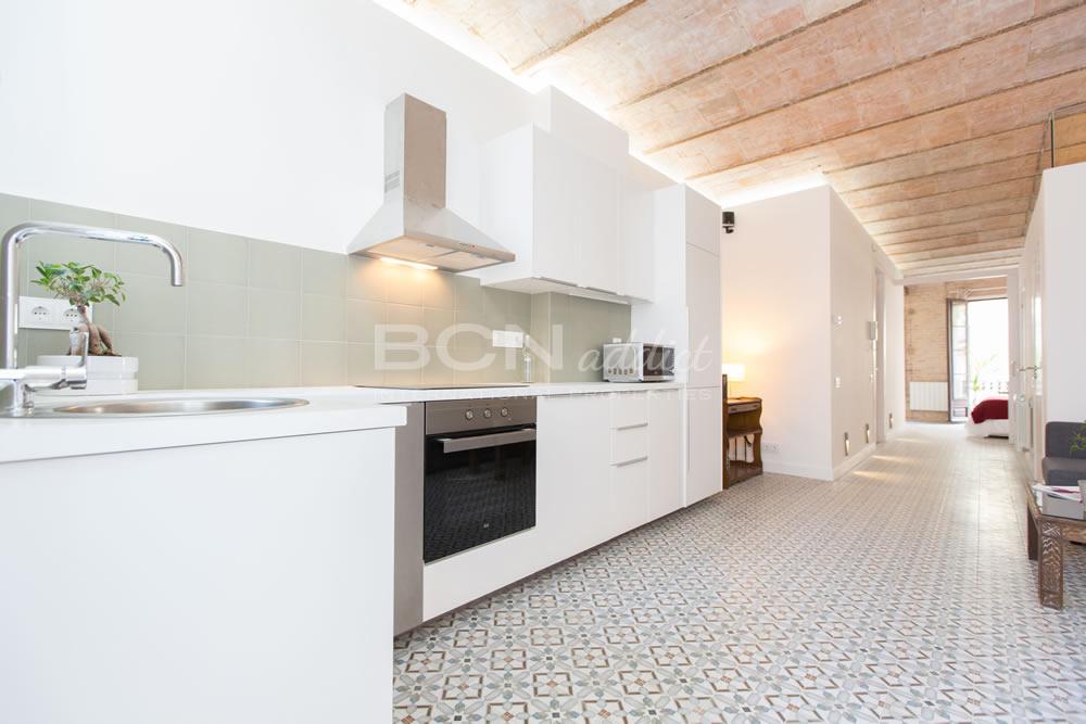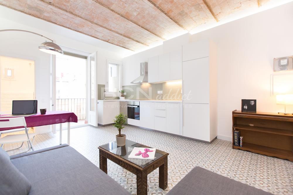 Search Located in the search-after district of Poble Sec in Barcelona, the flat is on a quiet residential street and set on the second floor of a historical listed building of 1898. The beautiful façade of the building offers well maintained historical elements. The building, the lobby and the stairways are in good condition.