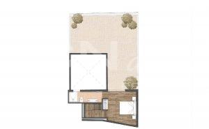 And in this building, there is a sublime 105 sqm top floor flat with 3 bedrooms, 2 bathrooms and a large living dining room with an open kitchen. Last but not least, there is a 37 sqm terrace with breathtaking views.