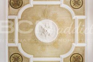 The dual-aspect property of 227 m2 is set on the second floor of a classic building of 1936. The stunning façade of greyish colour boasts columns, mouldings and iron ornaments on the balconies.