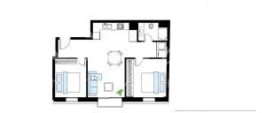The Apartment – A generously sized 58 m2, 2 bedrooms apartment with balcony, this stunning first floor apartment will be finished to the highest standards, with parquet floors throughout, a fitted, fully-equipped kitchen, top quality ceramic tiles, central air conditioning and a 'smart home' system.