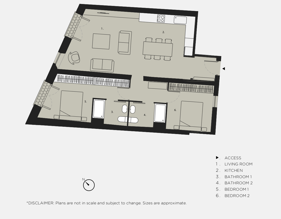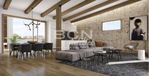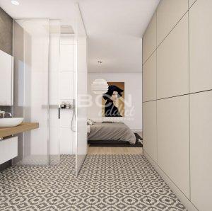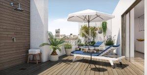 The flat is 72 m2 plus 24 m2 of terrace. There are two bedrooms with private bathrooms and closets, and a large living dining room with equiped kitchen that opens to the terrace.