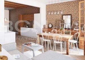 It consists of a big space with dining room and kitchen, one suits and a second bedroom.