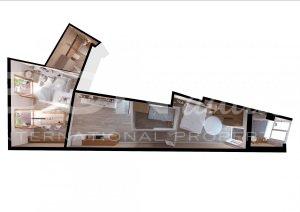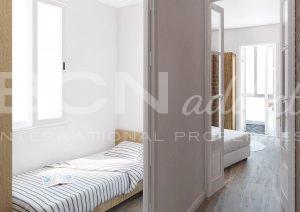 In this case, the apartment’s façade on the chamfer faces south, with the optimal orientation in light and sunny. On the other hand, the street is wider than the common streets of the Eixample. The streets are 20 meters wide and the street is 30 meters. This is because the railway originally passed through it (at this moment the passage is underground).