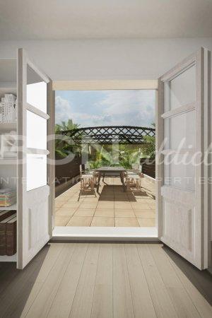 The flat counts one bedroom, two bathrooms and a nice dining living room. The flat is 69.20 sqm + a 23m2 terrace.