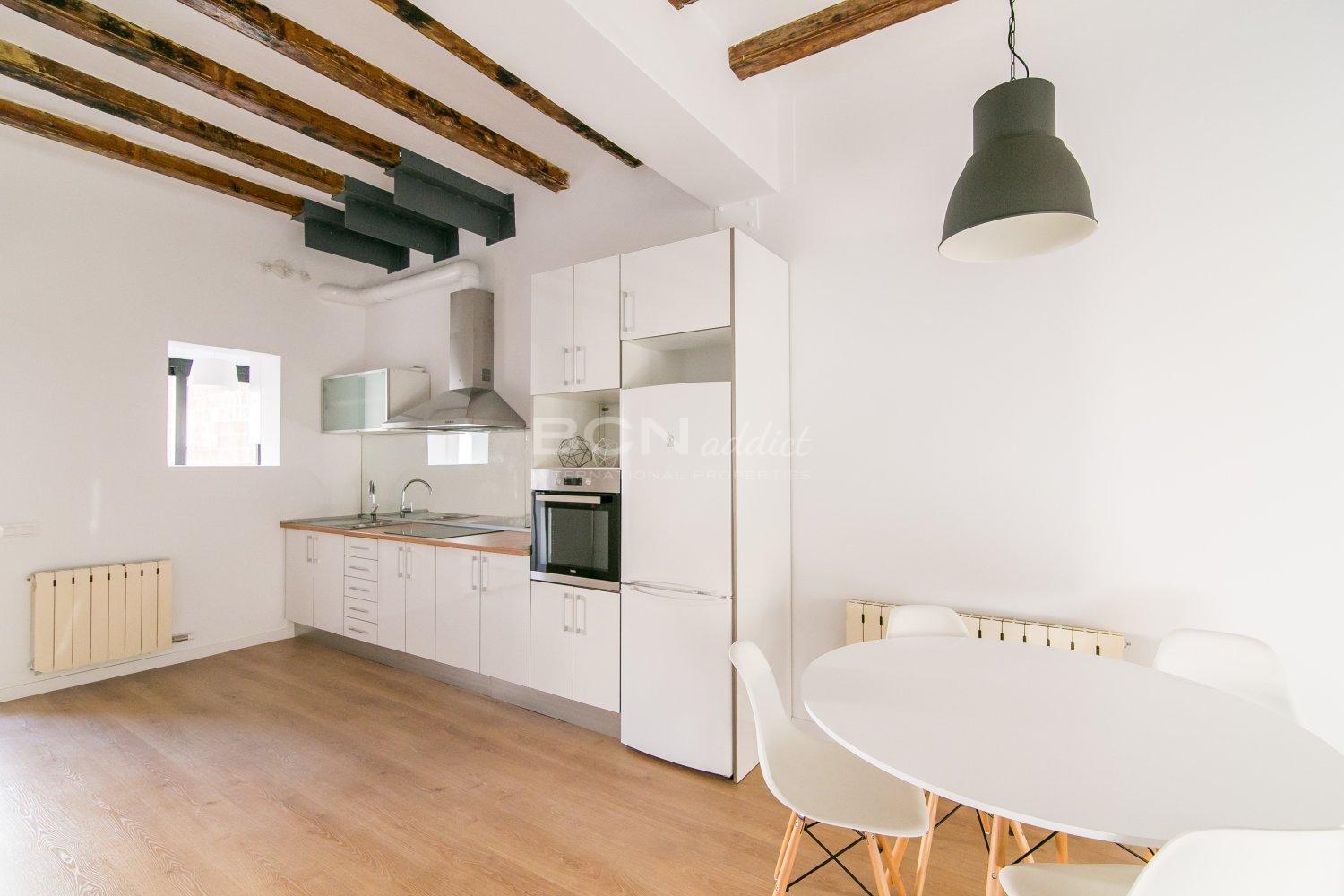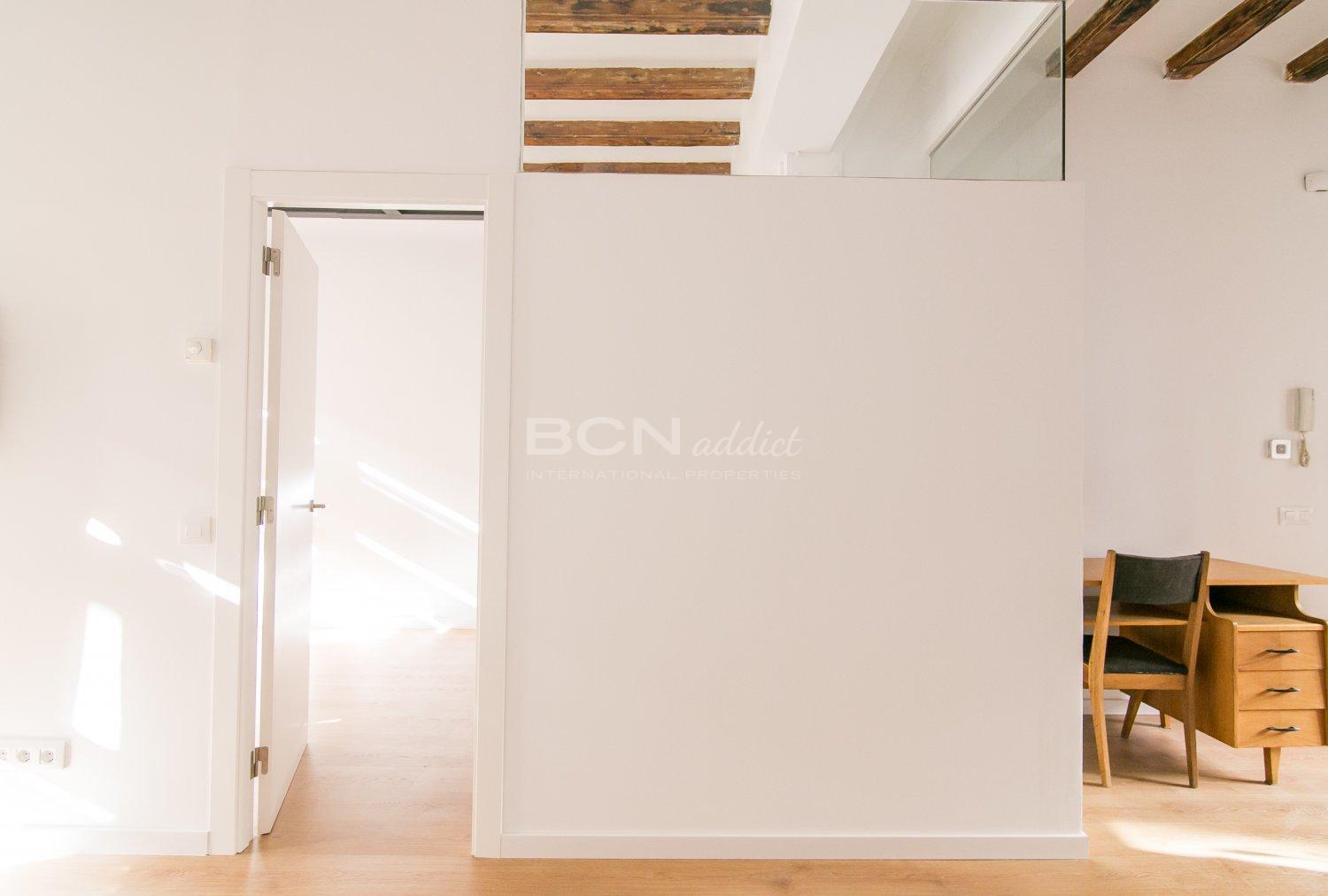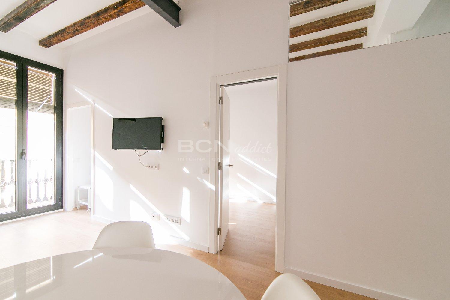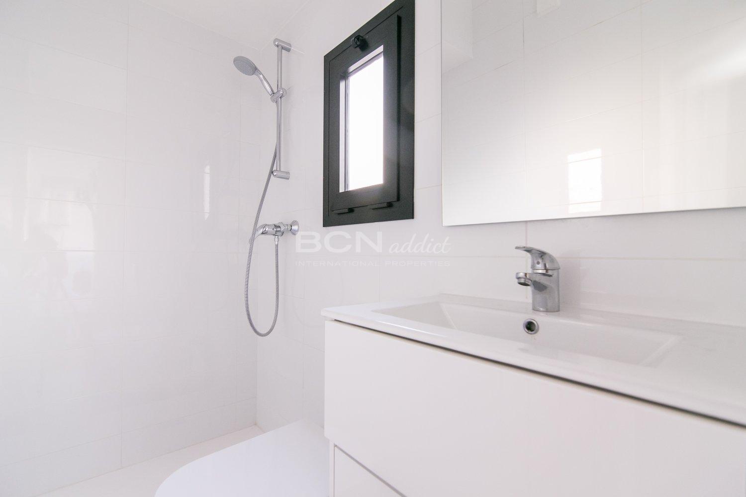 The apartment is located on Salva Street in the Barrio de Poble Sec a few meters from Parallel Avenue, perfectly connected to the rest of the city by subway and bus. It offers a dressing room, living room with open and equipped kitchen, bathroom with shower and laundry room in 55 square meters. It is equipped with heating and air conditioning for your comfort in addition to having double glazed windows.