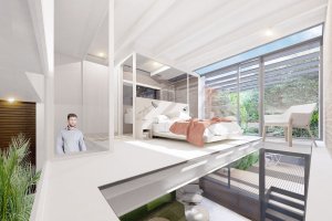 On the upper floor, there are three double bedrooms, two of them with bathroom en suite. From one of the rooms we can see unique views, since the architect has put a vertical garden. In addition, on the roof we find a large private terrace. The promoter offers the possibility of adding extras to make the house more personalized.