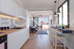 In the heart of the Eixample, the most fashionable district of Barcelona, (a few meters from Axel Hotel) we find this fabulous completely renovated brand new penthouse on the eighth floor of an estate with elevator dating from 1900.