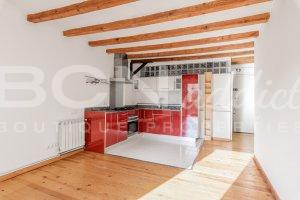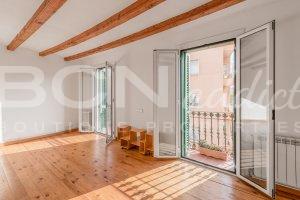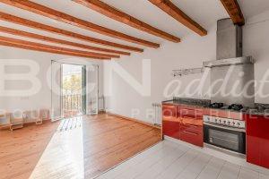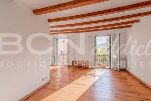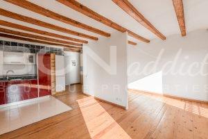 The flat boasts lots of natural light and a combination of modern interior design with genuine features such as wooden beams, wooden floor and iron balconies.