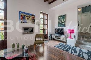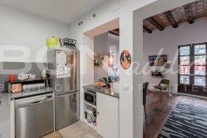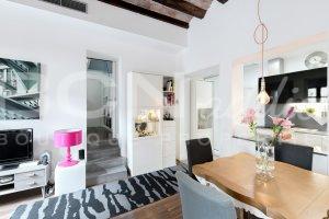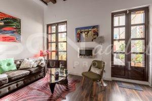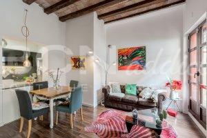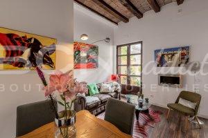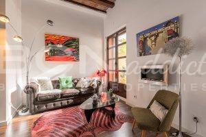 The flat of 58 m2 is nicely arranged with a combination of modern interior design and genuine features such as vaulted brick roof. The property is equipped with in-set lighting system, Air Conditioning (cooling and heating pump), double glazing windows with aluminium frame, a gas boiler serving radiators and hot water.