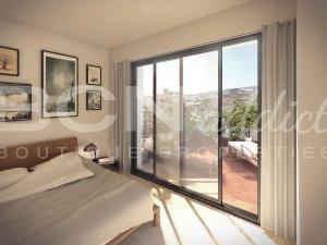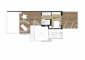 The apartment offers 3 bedrooms with tailor made wardrobe: 2 double bedrooms on the ground floor with direct access to an 18 m2 terrace. The first floor boasts a pleasant master bedroom benefiting from 2 terraces of 26 m2 in total. Both floors offer complete bathroom.