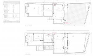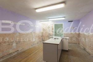 At the moment, the Ground Floor occupies all the depth of the plot, from the access by the street to the area under the current island interior terrace. In the first floor, the premises occupy the full depth of the building, with spaces in direct connection with street side and on the island's interior terrace. All the place is covered with false ceilings under beam. The current carpentry on the façade on the street and interior courtyard are painted wood and aluminum that have to be updated respecting the composition and colors of the rest of the facade.