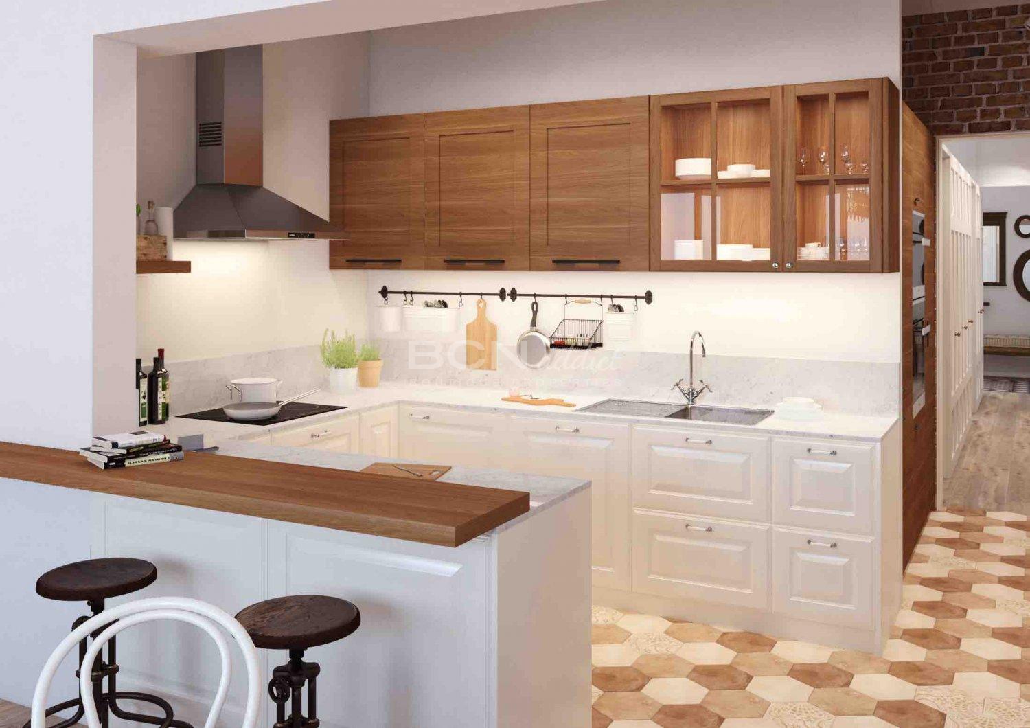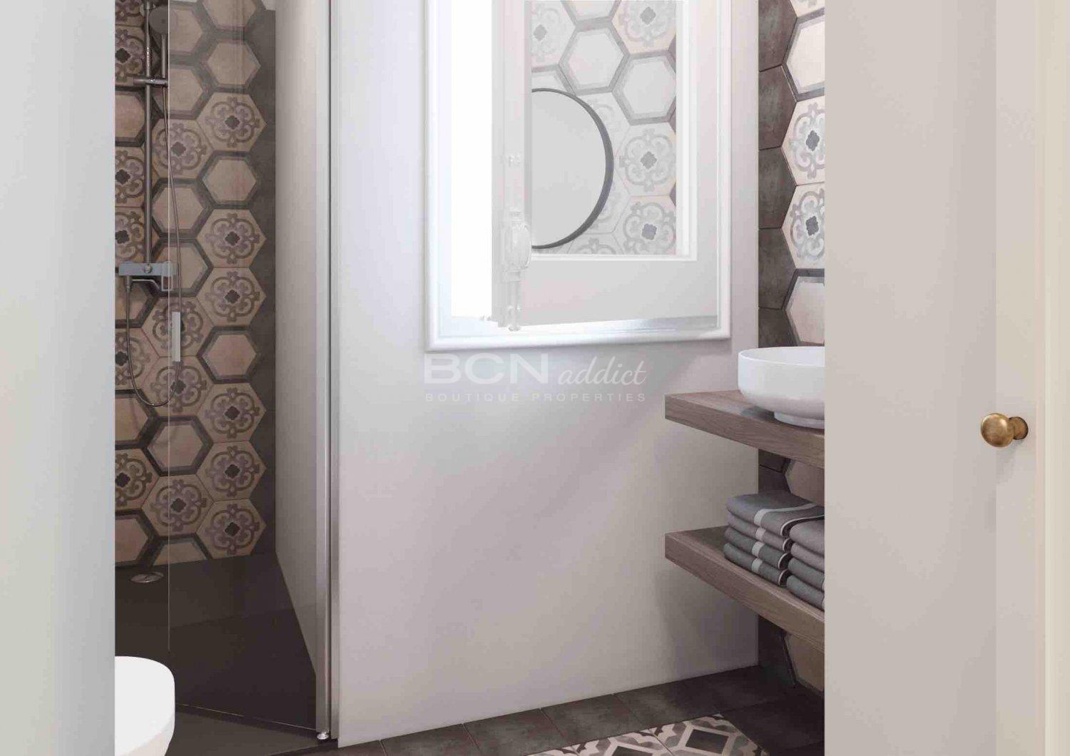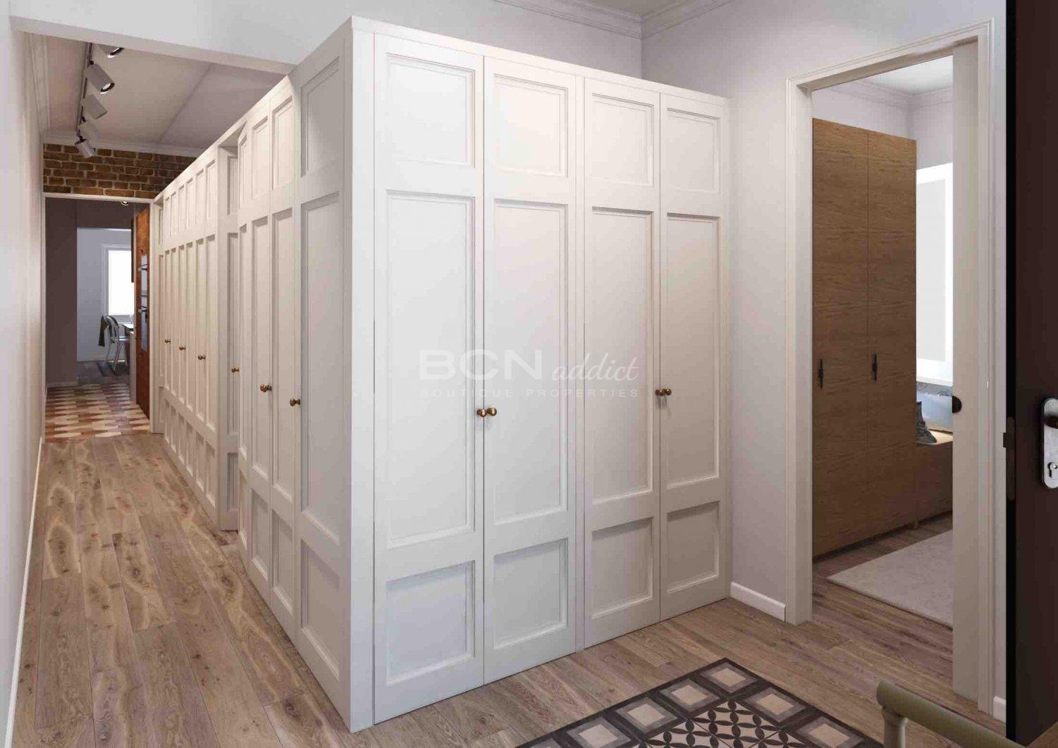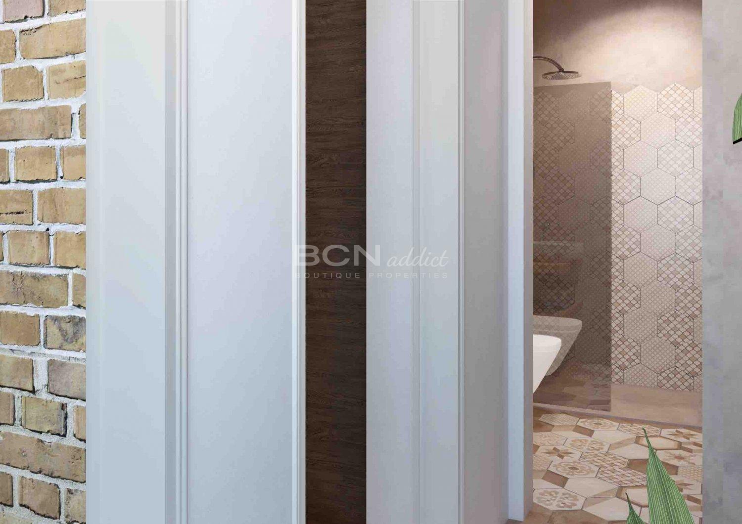 The flat combines original elements with new designer interiors and premium materials made by well-known brands, such as Bosch, Grohe, and Fujitsu. Constructive elements of Barcelona's Eixample, such hydraulic flooring, wooden doors, visible brick walls and catalan vault on the ceilings end up giving the apartment a perfect elegance where the footprint of Barcelona is present.