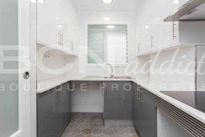 The apartment is located on the fifth floor of a modernist building and benefits from plenty of natural light. It has maintained many of its charming original elements, such as mosaic tiled flooring and interior and exterior woodwork features.