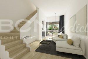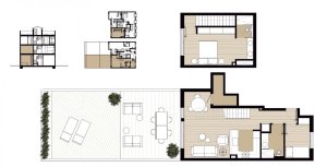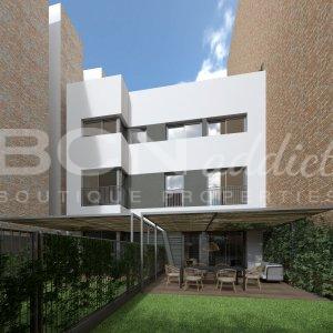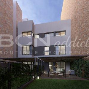 On the ground floor we have two duplex with an huge garden of more than 60m2. On the other hand, on the first and second floor, we have the three flats with a private terrace of approx. 25 squared meters assigned to each of them.