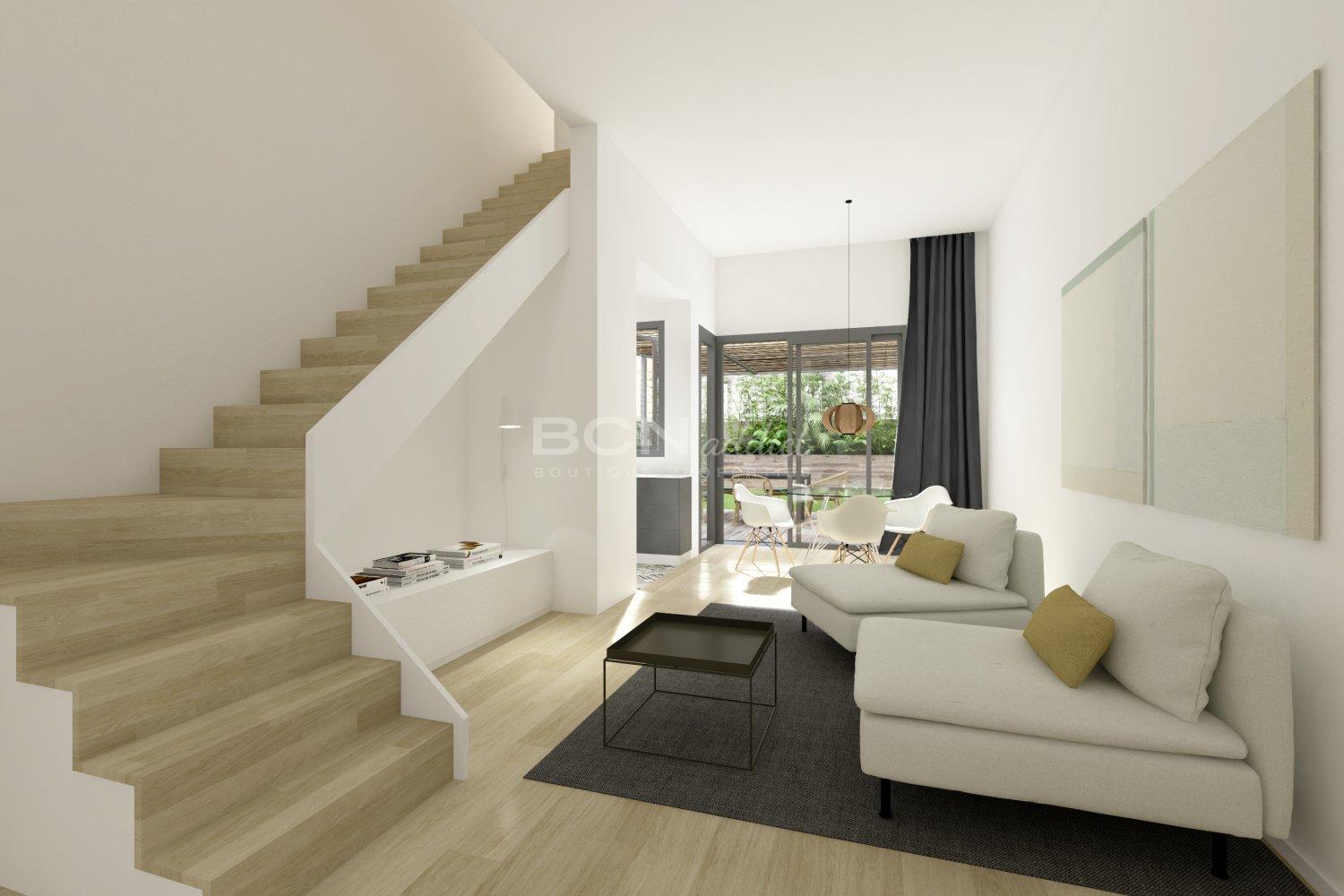 The building houses only five luxury apartments spanning across three floors. The ground floor is divided between two duplex units, both with a large, pampering Garden of more than 60m². The three remaining units on the first and second floor offer a selection of one and two-bedroom apartments, each with a private 25m² roof top terrace, for enjoying Barcelona´s excellent weather. The building is located a few meters from Avenida del Parallel, a mere two minute walk from the metro station, and the neighboring streets are home to some of the city´s most popular sites. Poble Sec is famous for its growing gastronomy scene, with more than 5 Michelin star restaurants, as well as for its varied theatrical and cultural offering, which currently makes it one of Barcelona´s most attractive areas.