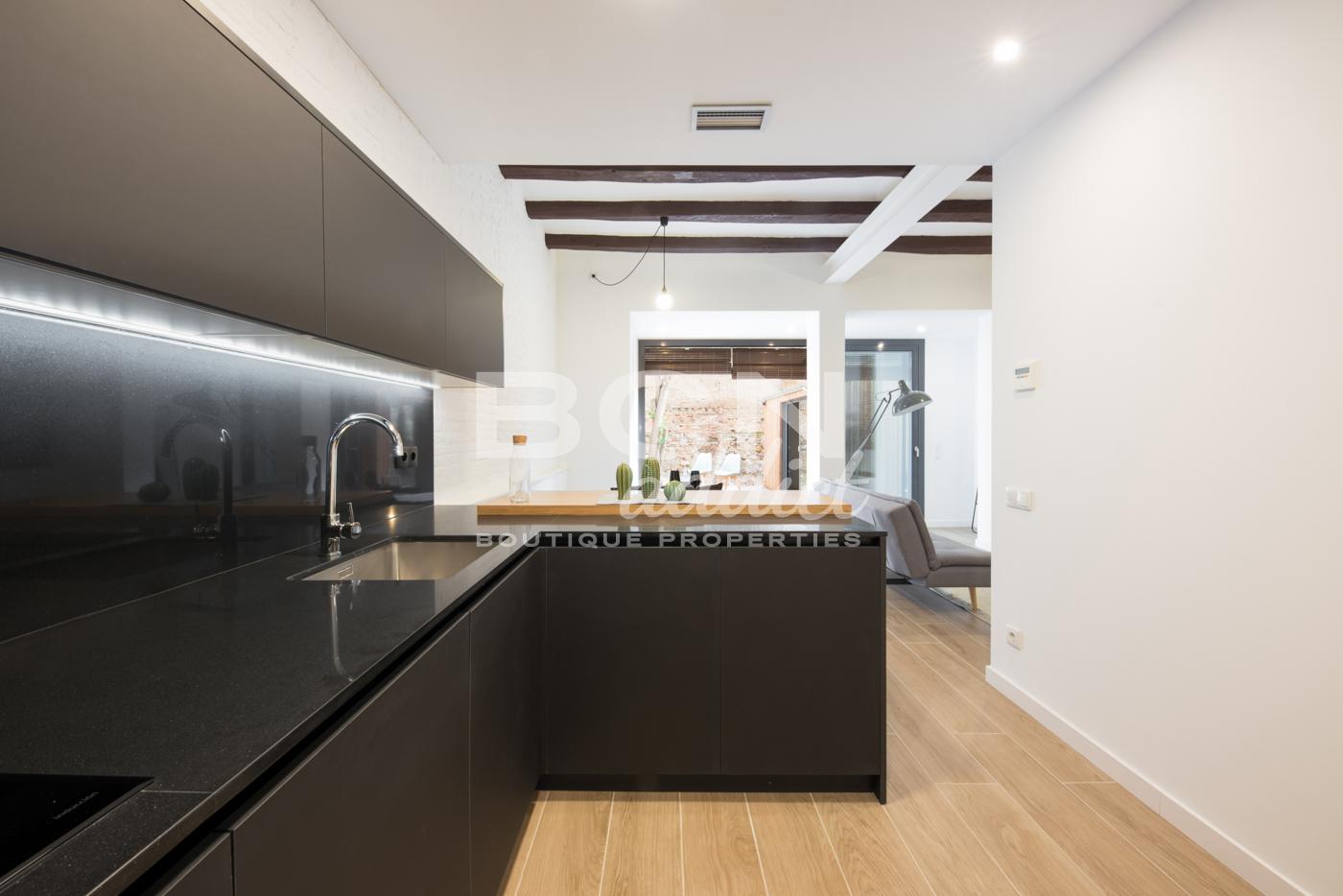 This is a unique opportunity to acquire a renovated flat with a contemporary living space and ample outdoor belongings in an upcoming district of Barcelona.