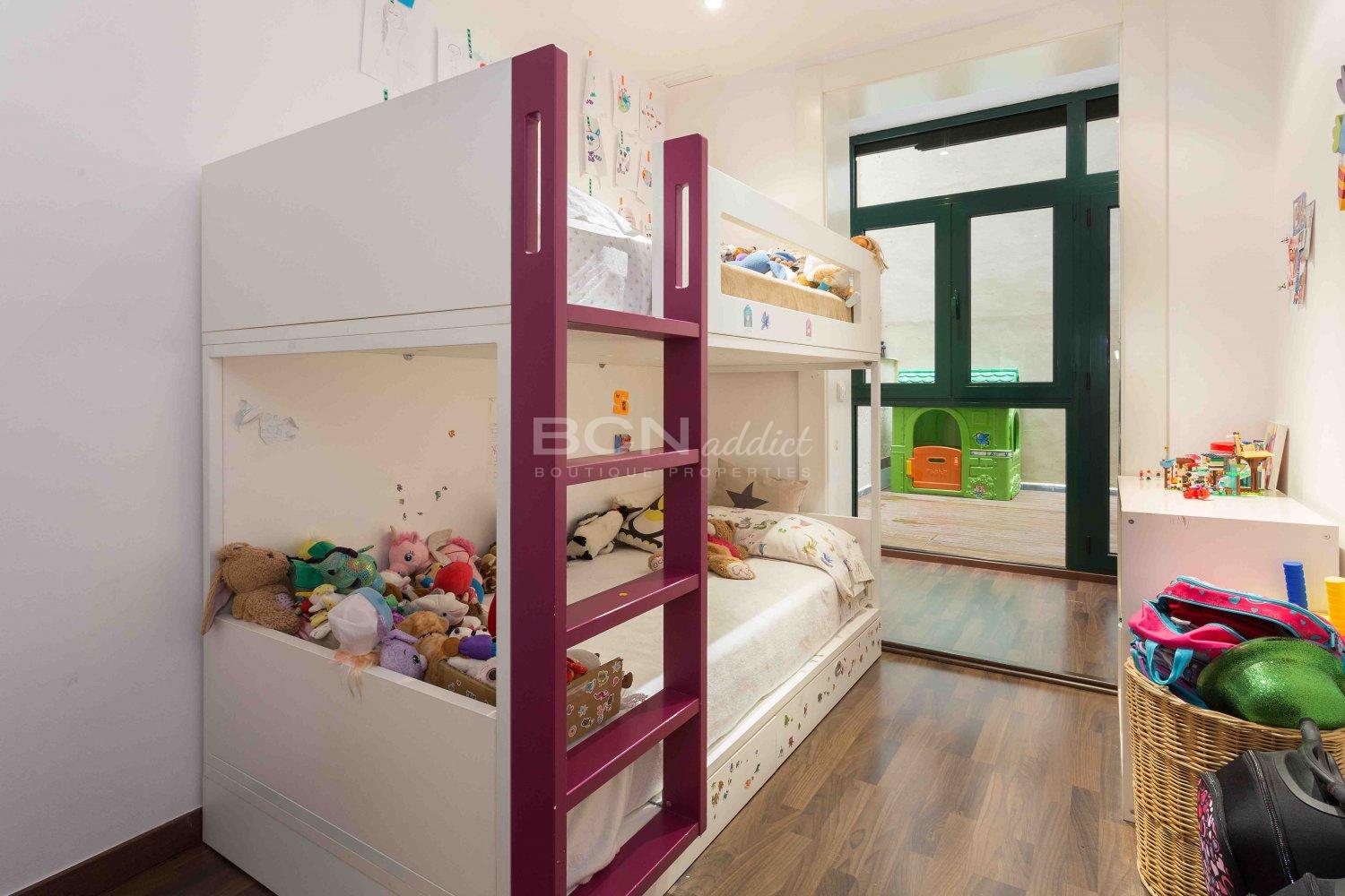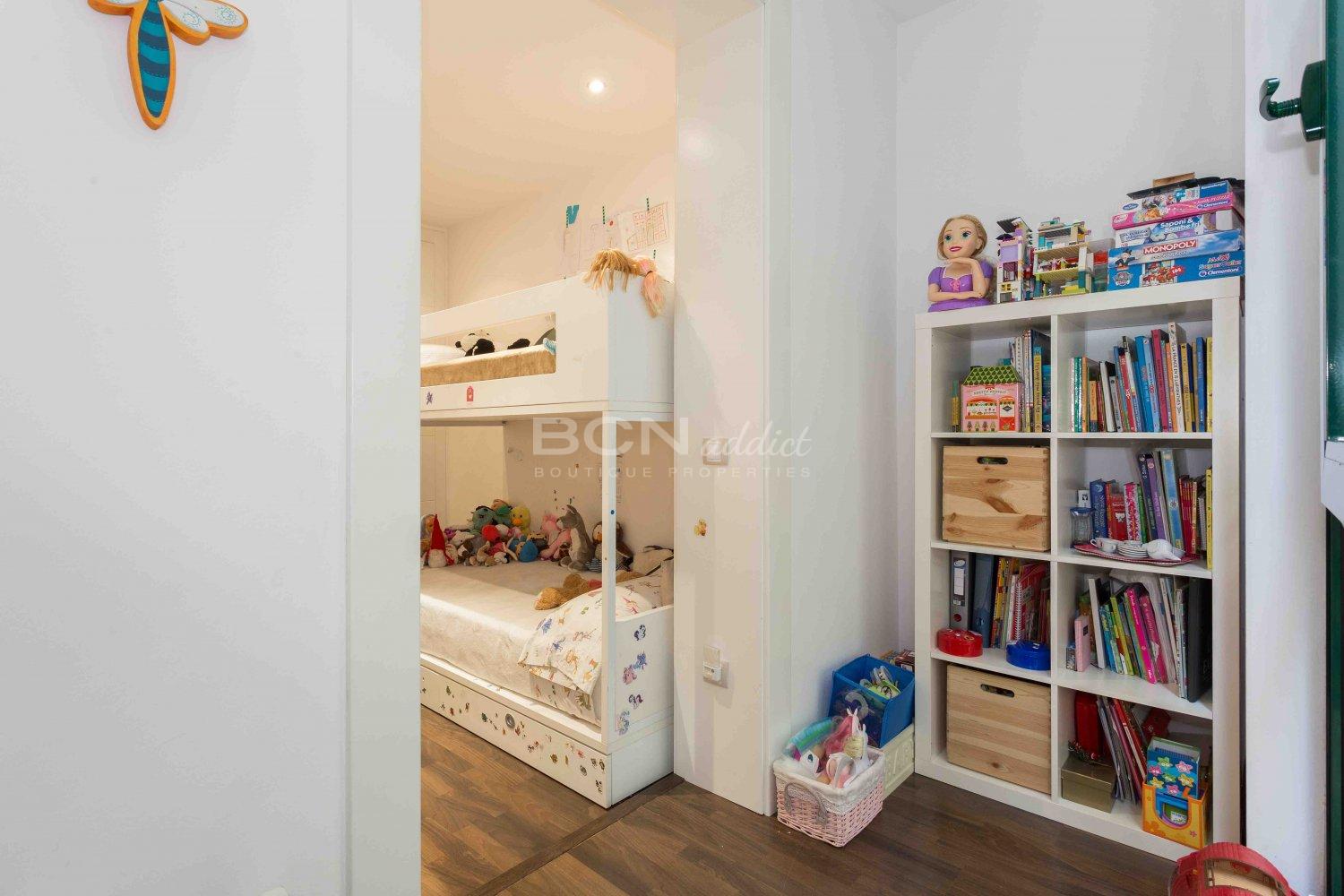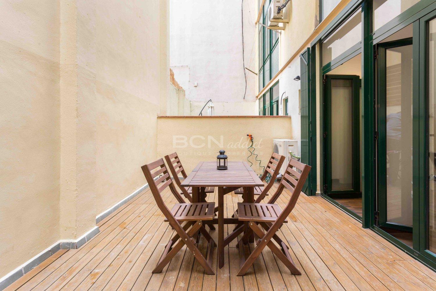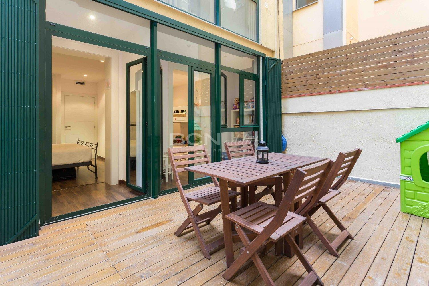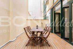 The night area consists of two bedrooms on the interior courtyard with direct access to the tranquil terrace, a full bathroom and a laundry area. The large terrace of more than 17 m2 is a fantastic added value, becoming a second living-dining room during the summer months.