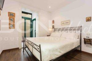 The refurbished flat of 95 m2 features a redistribution of the entire layout. The apartment is clearly distributed in two areas: day and night. On the street side, the living room and one master bedroom (with ensuite bathroom) benefits from the access to the balcony. The separate kitchen offers built-in furniture and appliances: hob, cooking spots, oven, dishwasher and fridge.