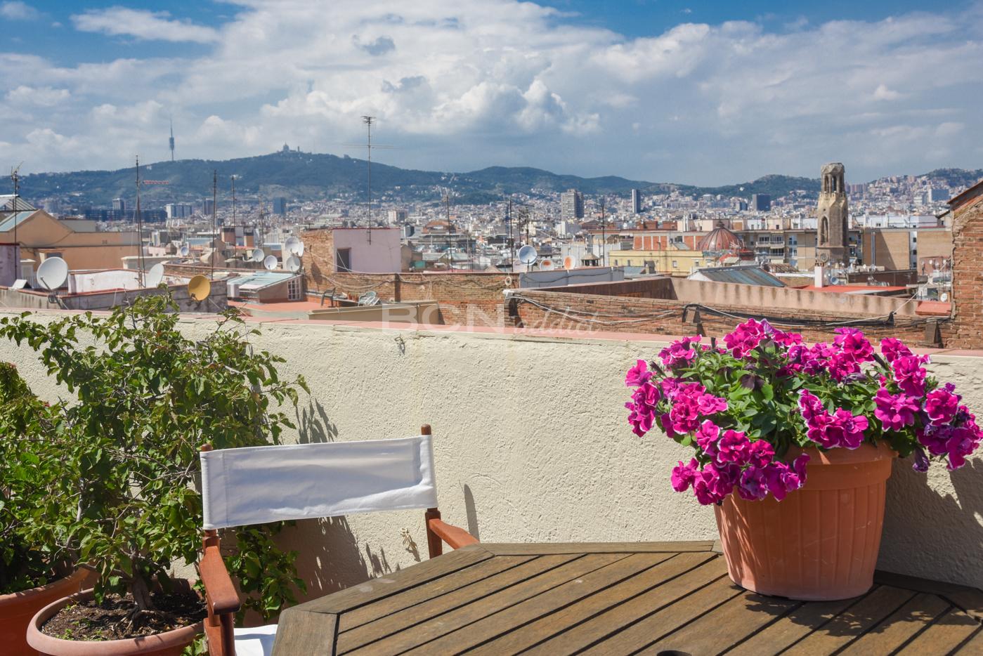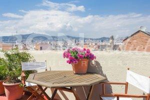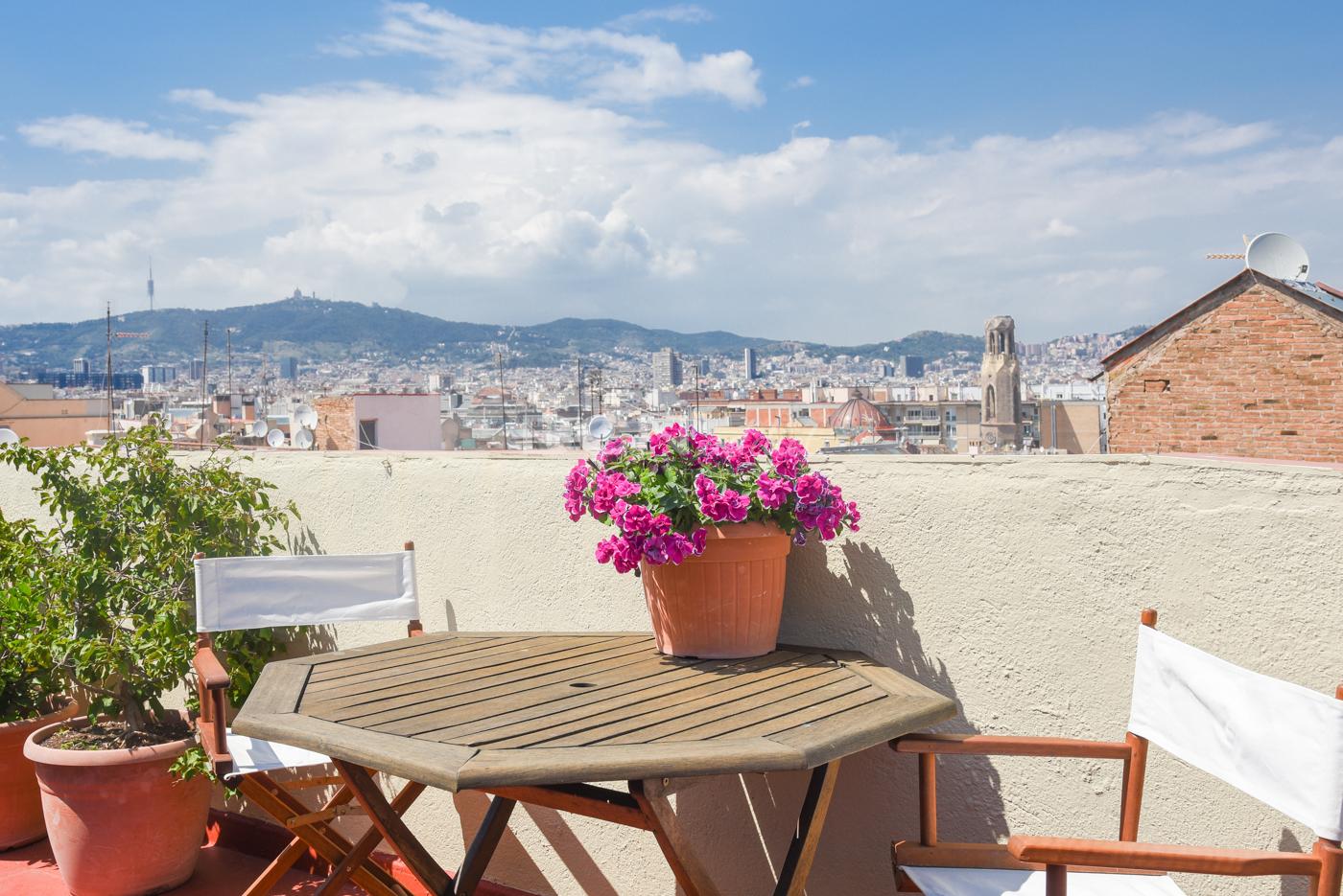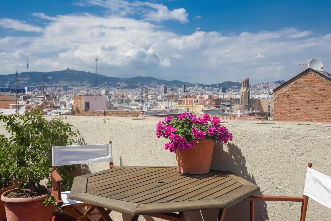 Au-dessus de la propriété, une belle terrasse de toit d'usage exclusif (50 m2) offre une vue panoramique sur la ville de Barcelone.