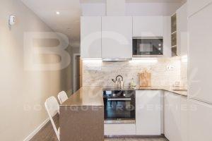 The flat is equipped with superior finishings: in-set lighting systems, double glazed windows, electric boiler for water and heating, air conditioning system by conducts: heating and cooling (AC). The kitchen offers modern furniture and integrated appliances: electric hob, extractor hood, oven, fridge, freezer and dishwasher.