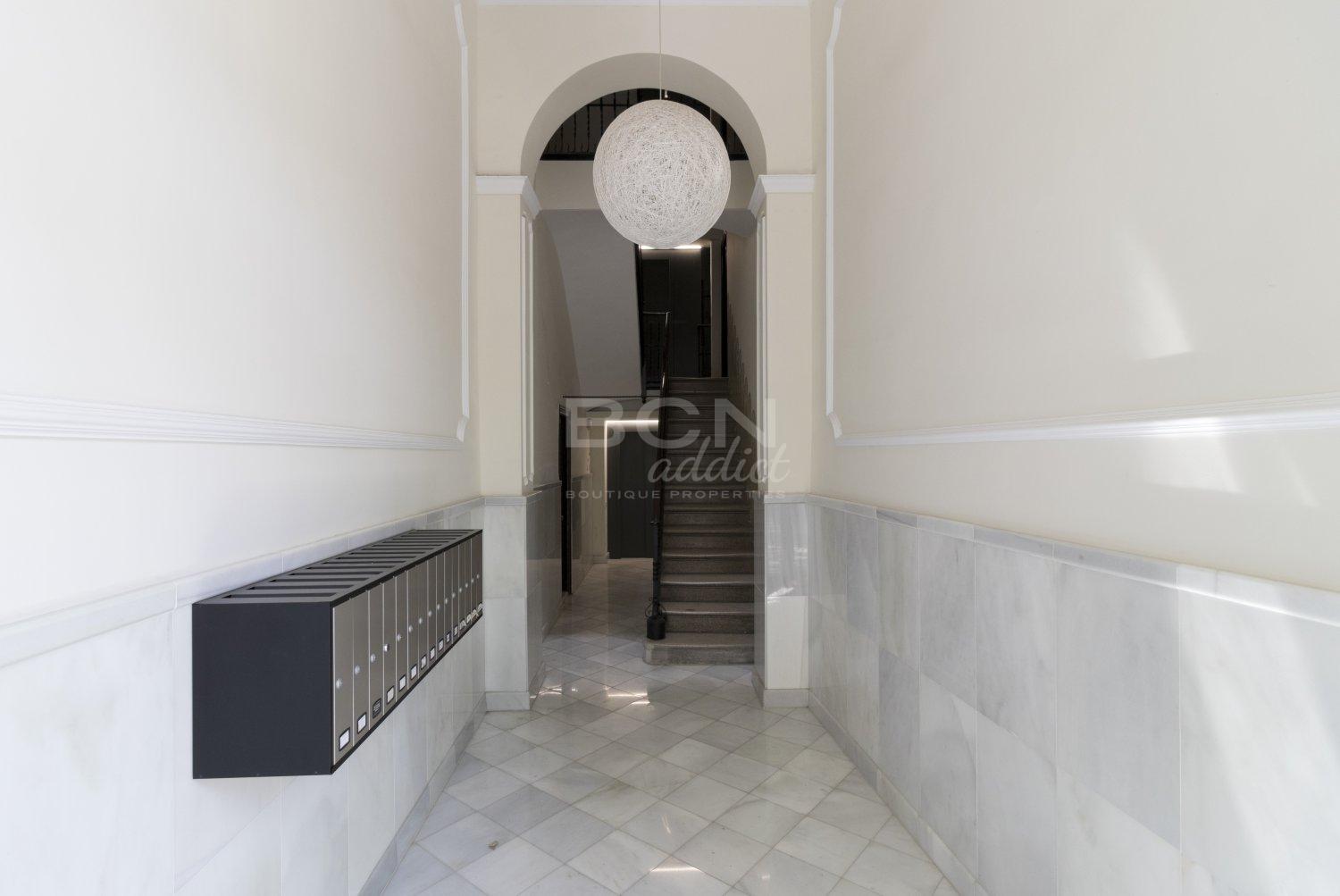 Search The property is ideally located in the search-after district of Eixample of Barcelona, moments from Sants Station, Hospital Clinic, street Enric Granados and Plaza Universitat offering a wide variety of amenities, venues, and shops.