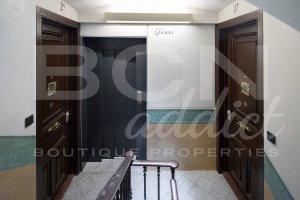 The beautiful colourful façade (ocher and grey colors) of the building offers well maintained historical elements such as window frames, moldings and iron balconies. The building´s structure and façades, the lobby, the lift and the staircase are in good condition.