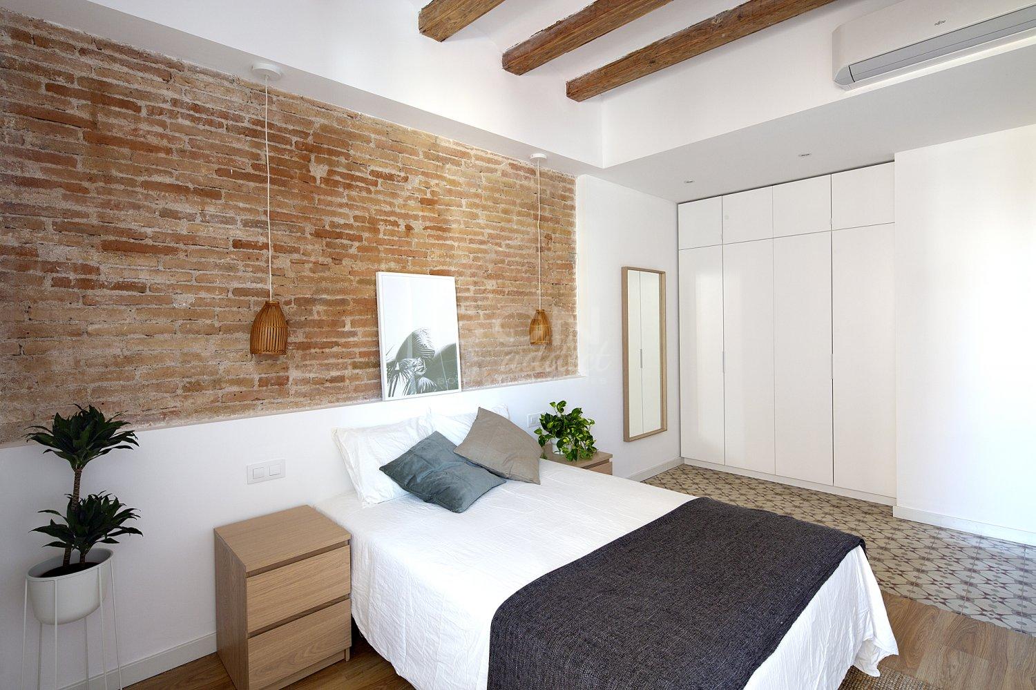 The flat boasts a combination of modern interior design nicely blend with genuine features such as hydraulic tiles, vaulted brick ceiling, exposed brick walls, wooden door and door frame. The flat is ready to move in and includes all needed furniture. The apartment has recently been refurbished, and the reform includes premium materials and new installations made by well-known brands.