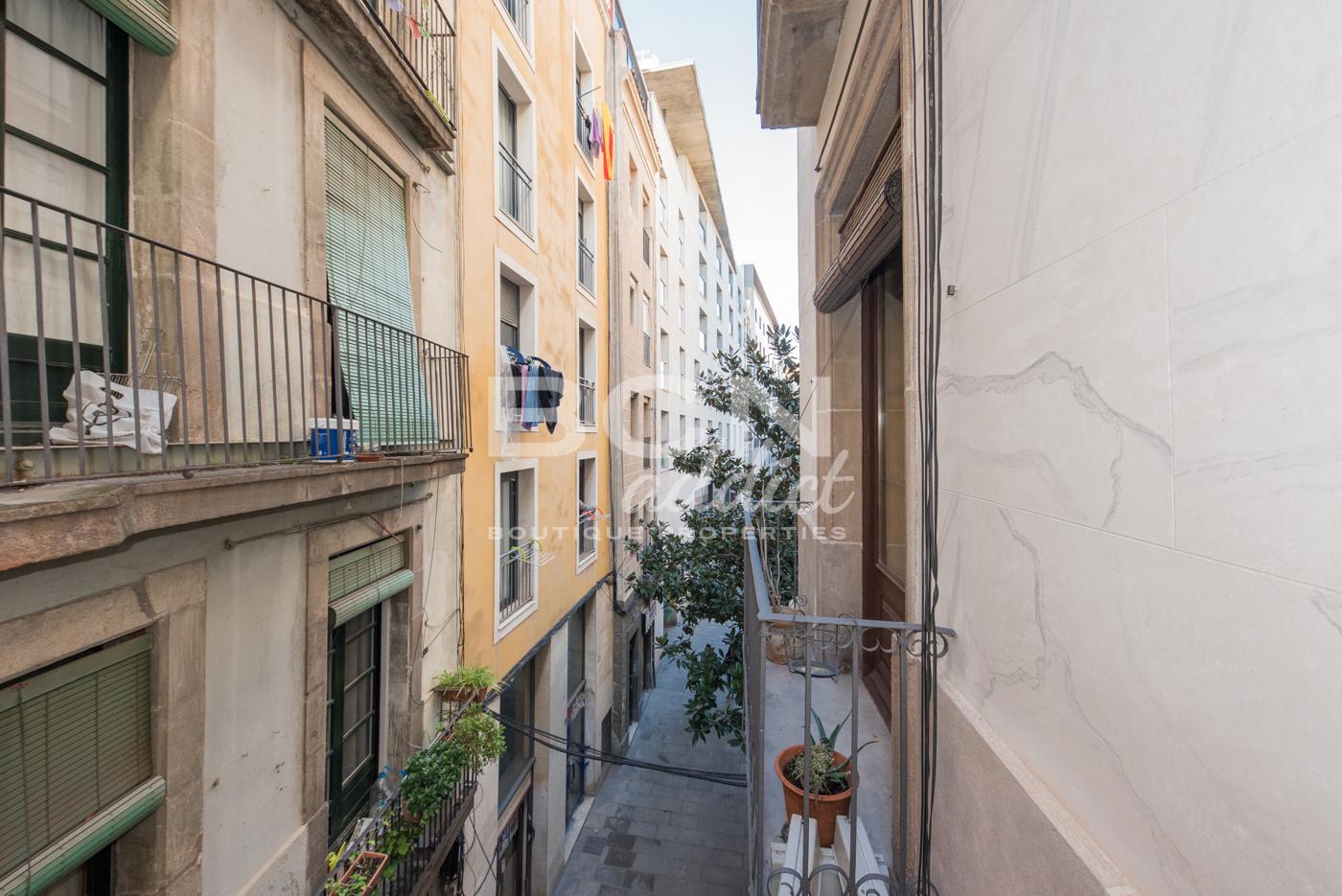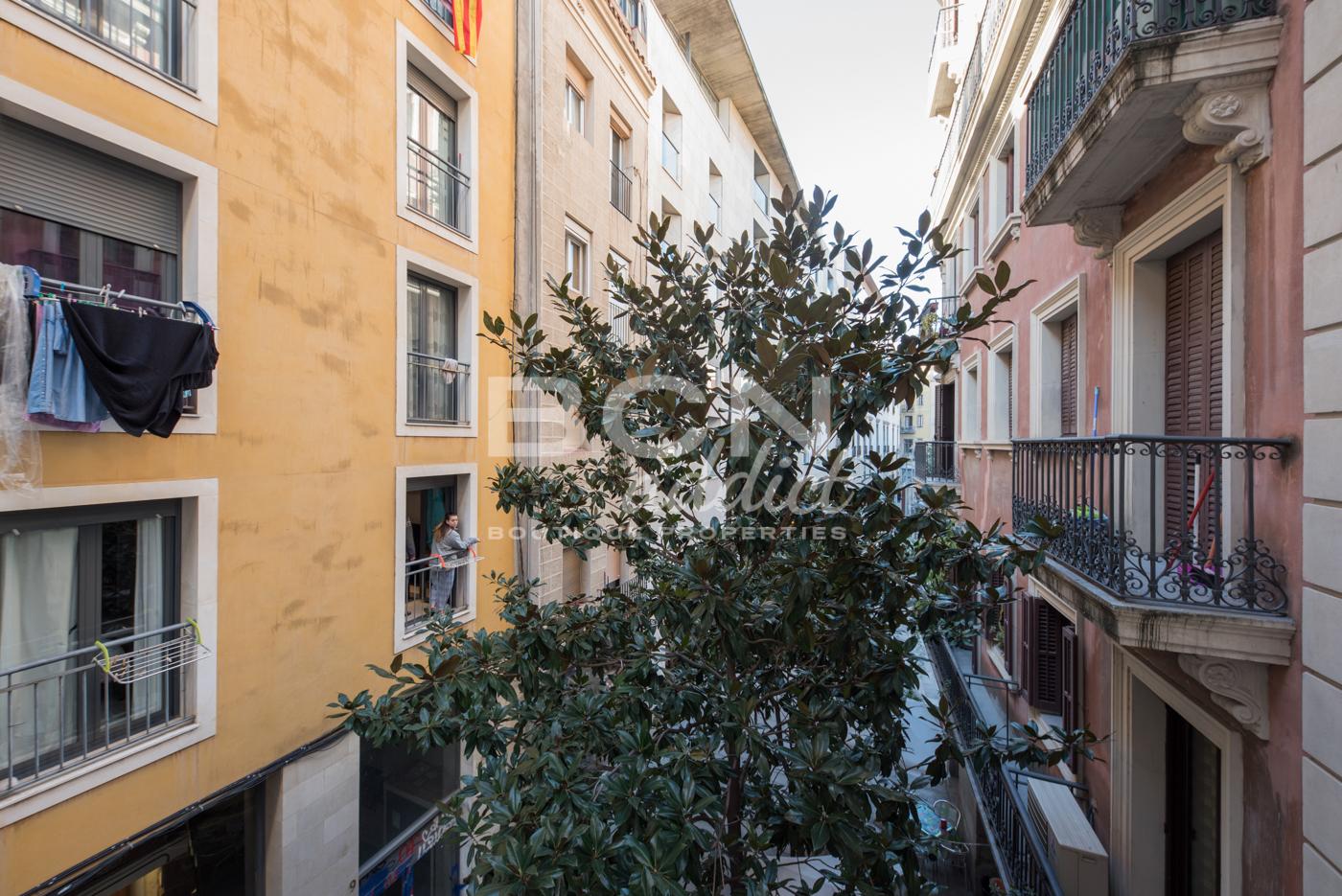 Search The property is ideally located in the sought-after Gothic Quarter of Barcelona, just steps away from Plaza Vila de Madrid, within walking distance of Plaza Catalunya. It is situated in a beautiful building from 1900, on a charming pedestrian street. The building is close to the Catalunya transport hub and close to everything the city has to offer, including many amenities and shops.