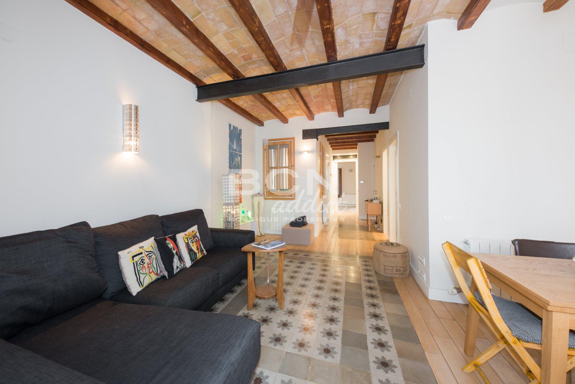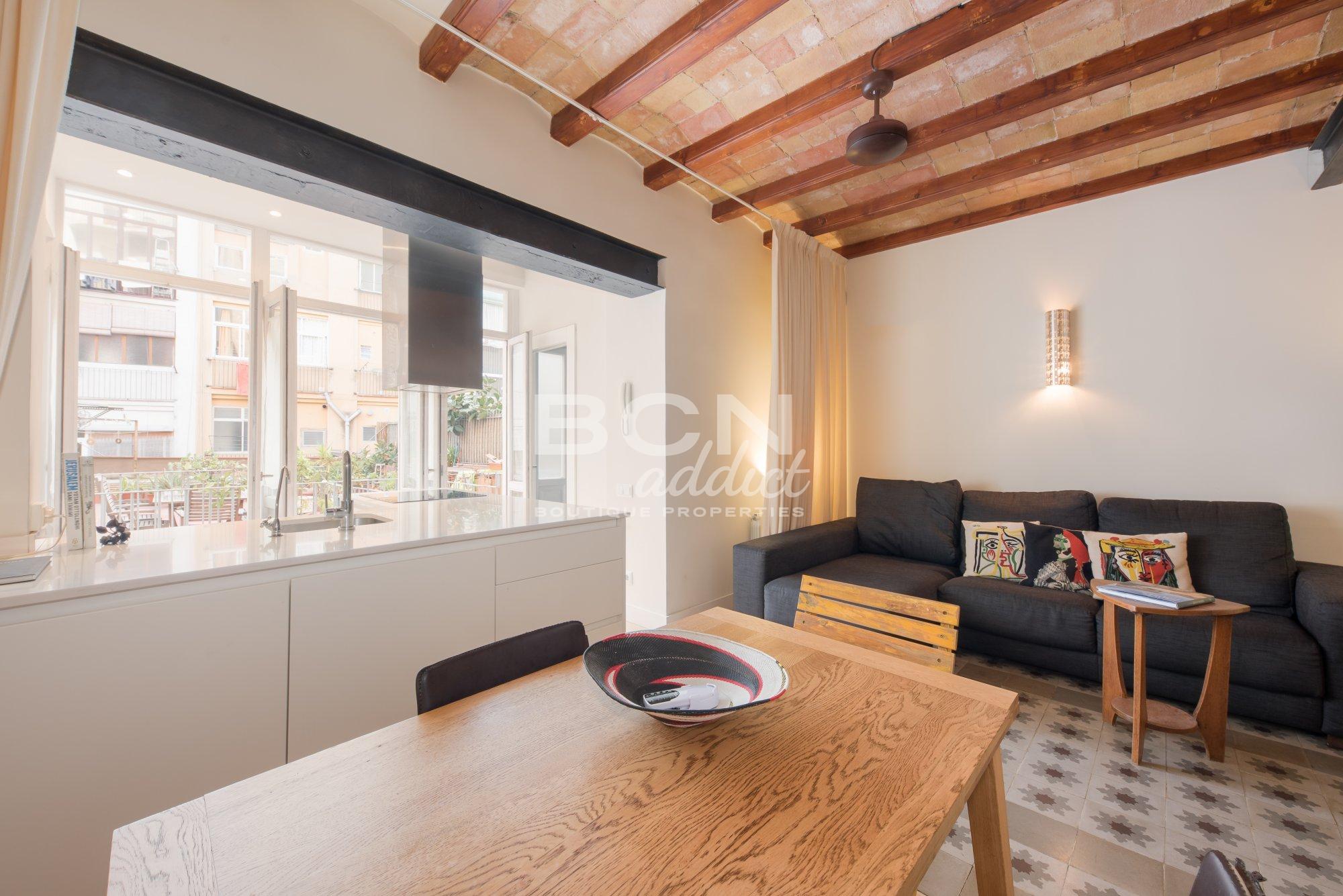 Search Enviably located in the vibrant district of Poble Sec of Barcelona, the flat is on a famous residential street. The property is a few blocks away from Montjuic parks and close to trendy boutiques, local restaurants, tapas bars and famous sightseeing places. The apartment is also in the vicinity of public transport: several buses and metro lines such as L2 and L3 Parallel. There are underground parking options for about 150 €/month in the vicinity.