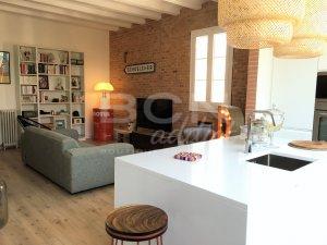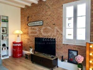 This triple-aspect flat of 80 m2 presents bright living space with high ceiling and a superb 40 m2 open-plan kitchen and living room area. The property is in excellent state and was revamped with expensive and modern interior design. The flat combines original elements (interior woodwork carpentry, mosaic flooring, exposed brick walls or vaulted brick ceiling) together with modern interiors with use of premium materials.