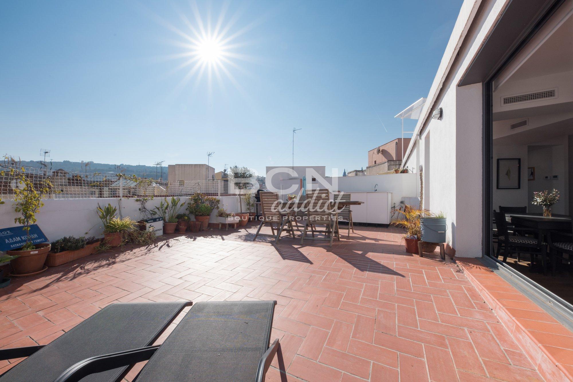 This is a unique opportunity to acquire superb penthouse, recently refurbished, with 2 private terraces on the same level in one of the coolest district of Barcelona.