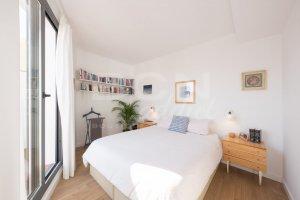 The master bedroom features a walk-in closet, a complete bathroom with spacious shower and direct access to the terrace. The second bedroom also benefits from direct access to the second independent, street side terrace of about 30m2 with afternoon sun. This ample double bedroom offers a private bathroom with bath and is totally independent to the rest of the home.